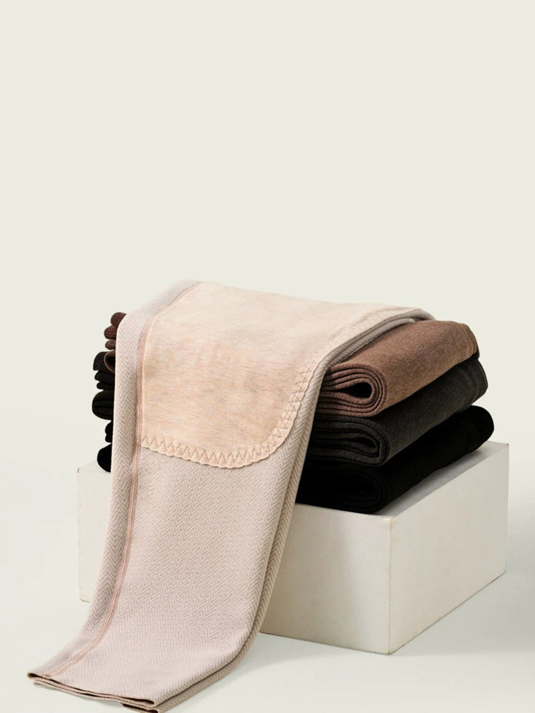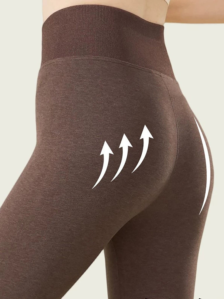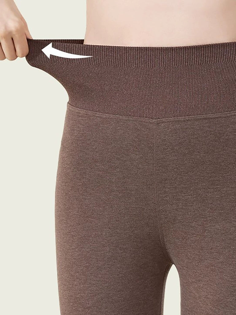 بنطال ضيق نسائي شتوي دافئ بلون نقي بخصر مرتفع