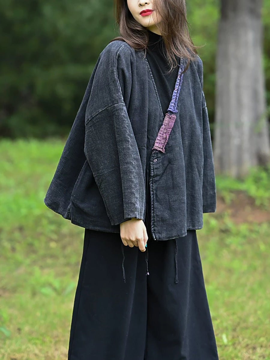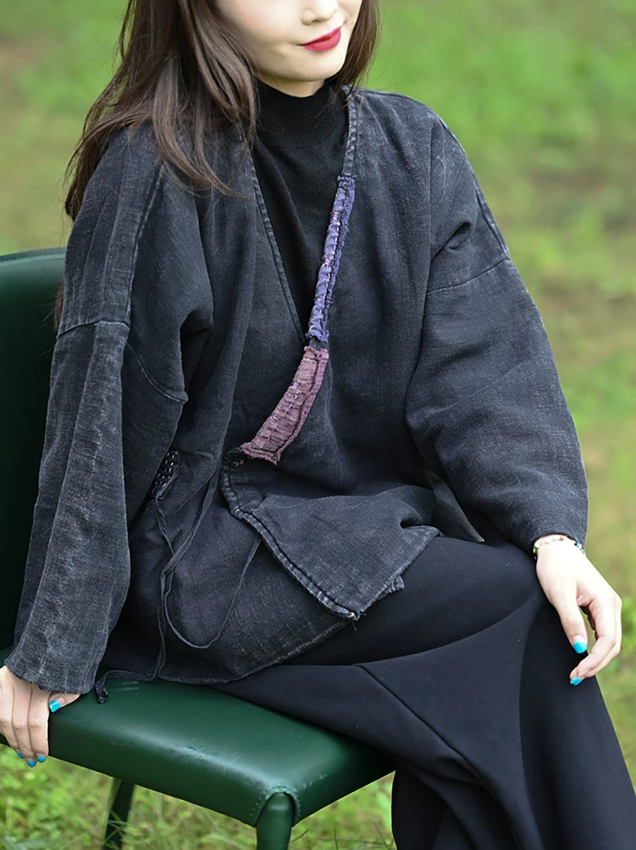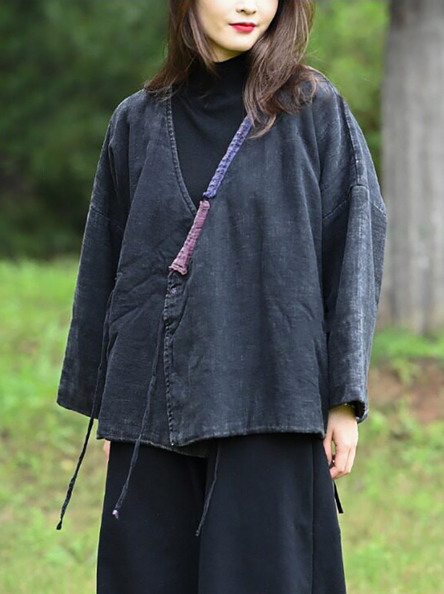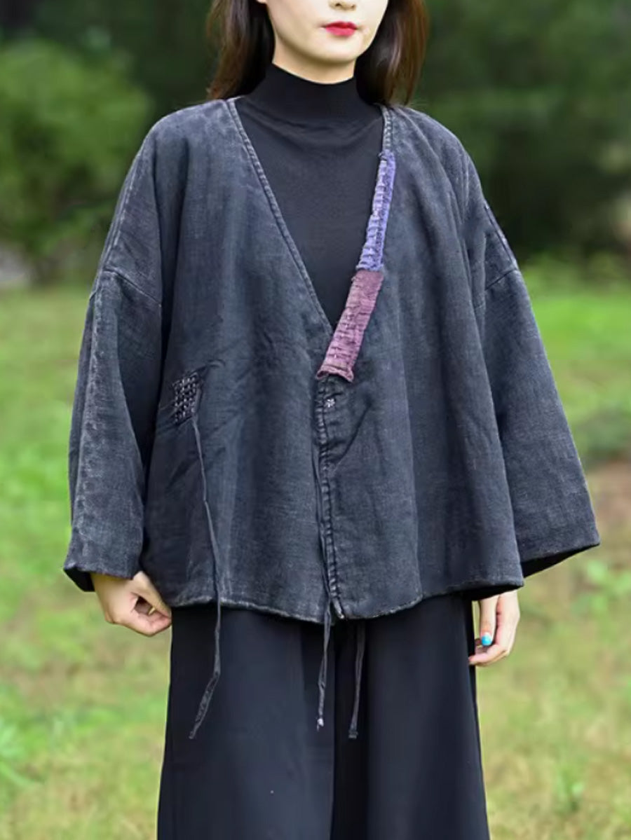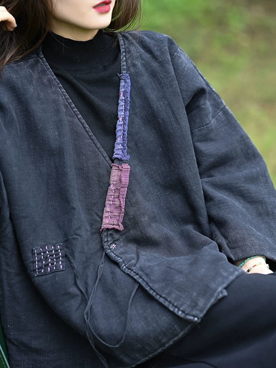 معطف شتوي نسائي بتصميم كلاسيكي مرقع بياقة على شكل حرف V