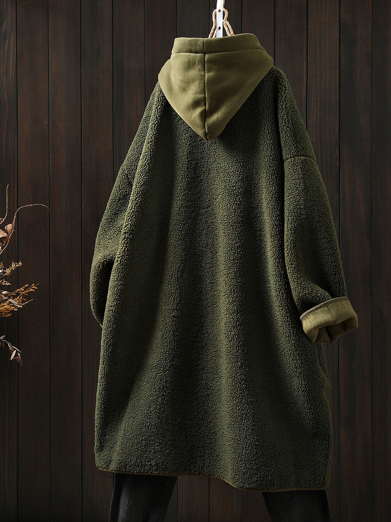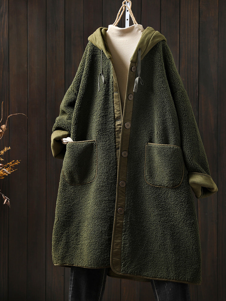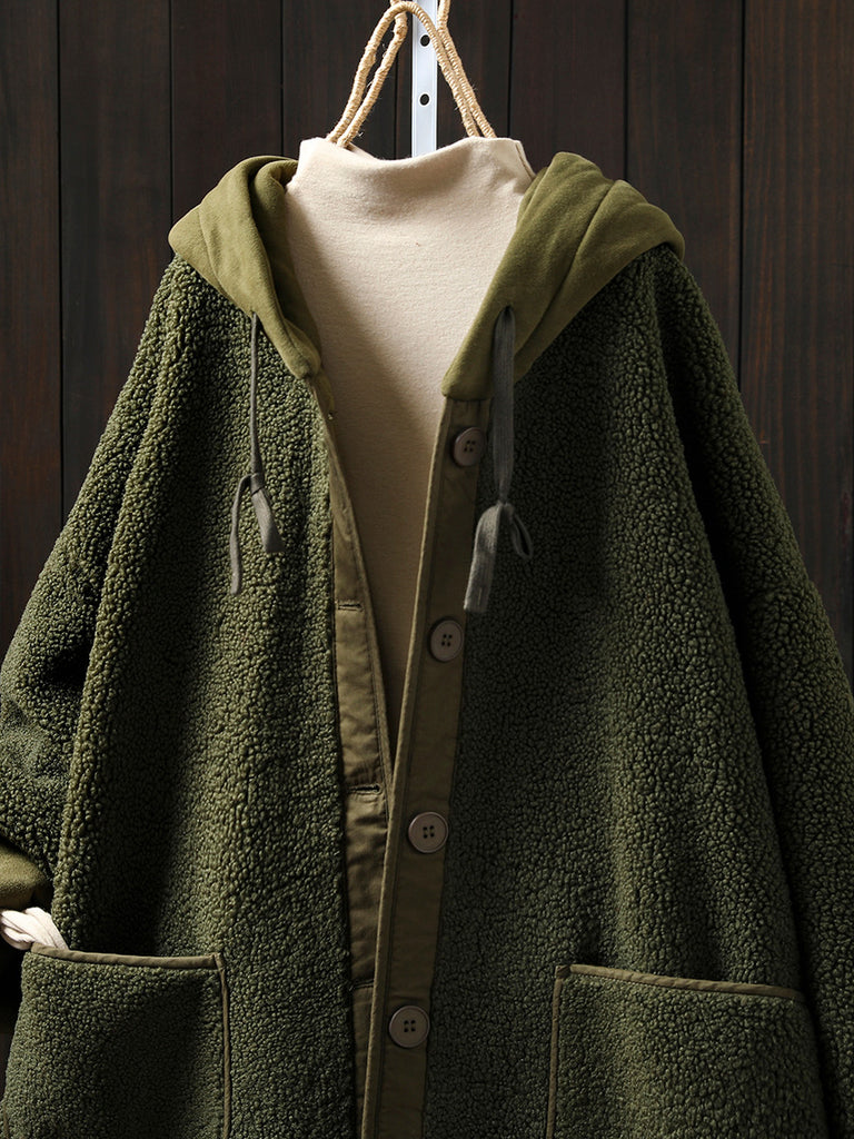 معطف نسائي شتوي دافئ من الصوف بغطاء للرأس