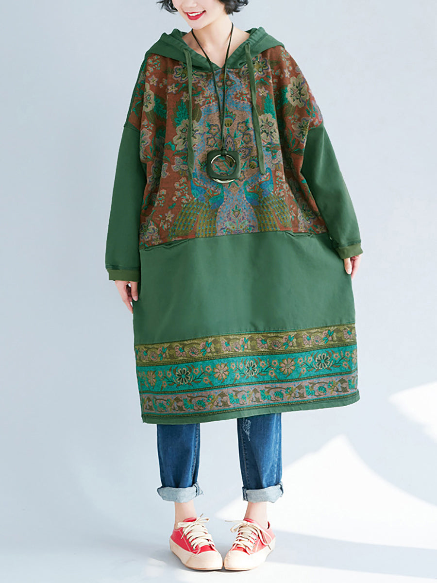 فستان نسائي بغطاء للرأس بجيب طويل مزين بالزهور العرقية