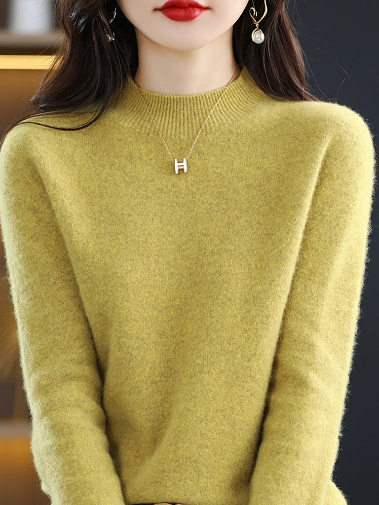 سترة نسائية خريفية كاجوال من الصوف المحبوك بنصف رقبة مدورة