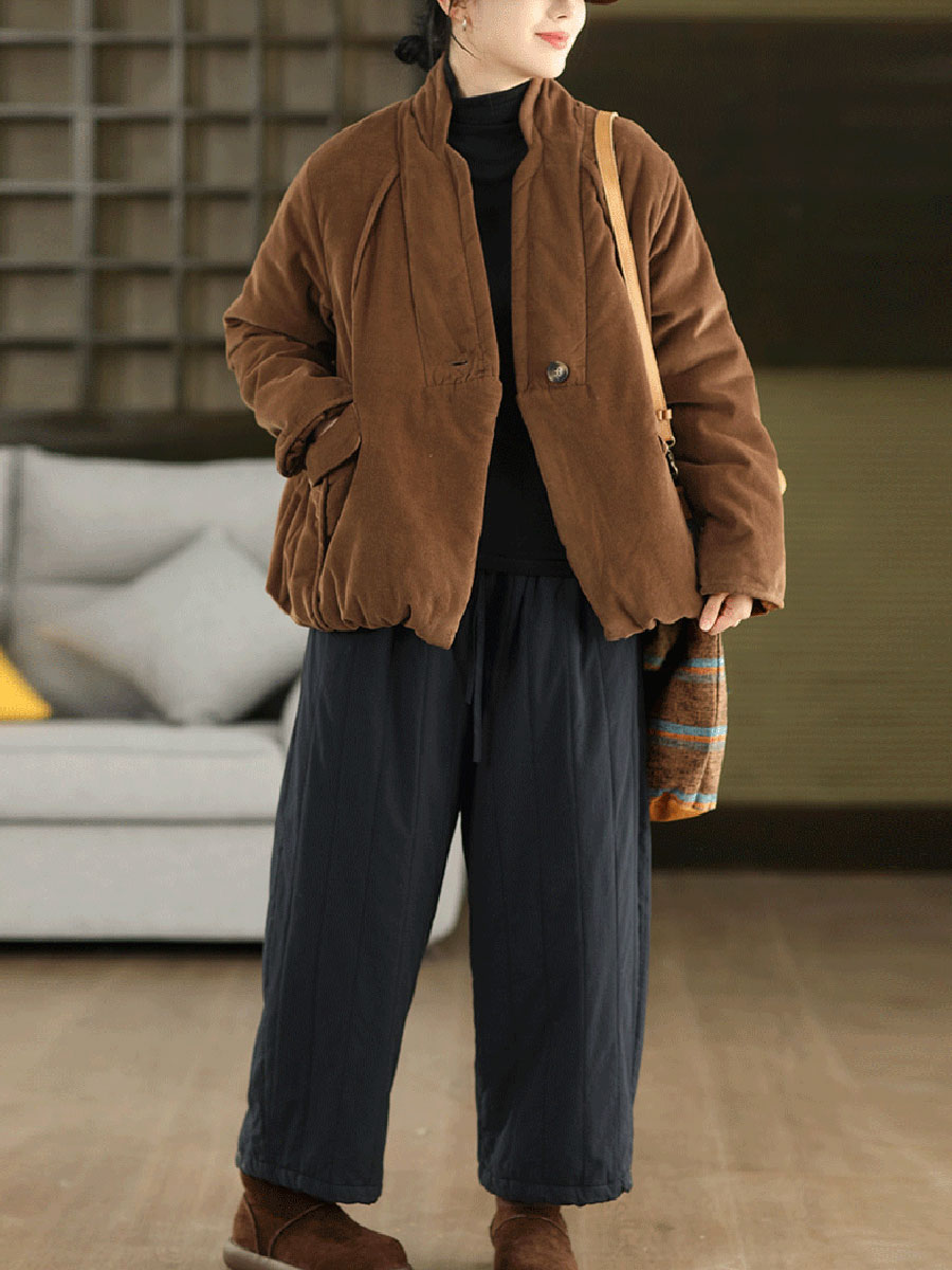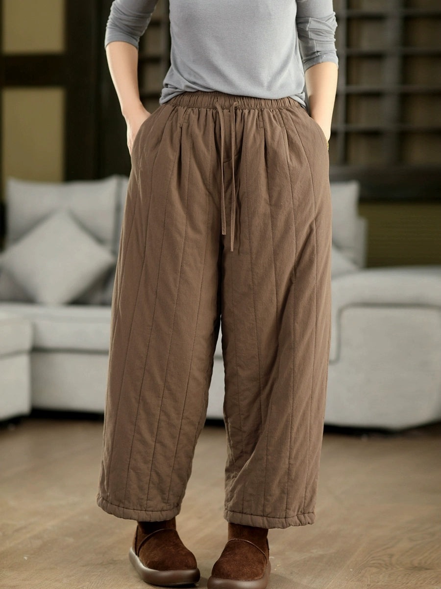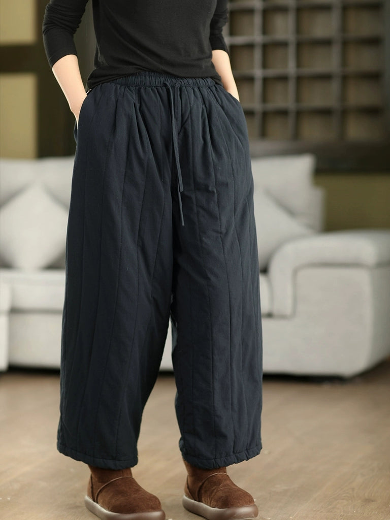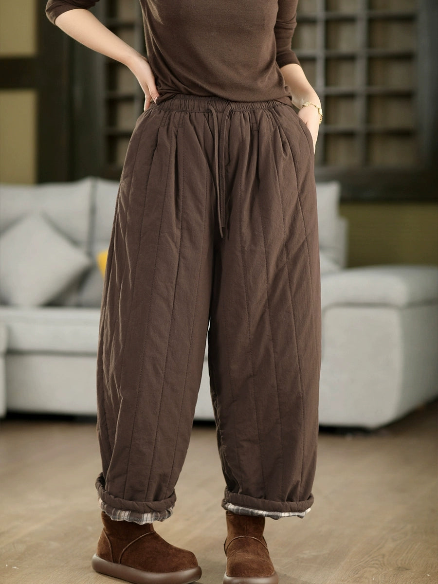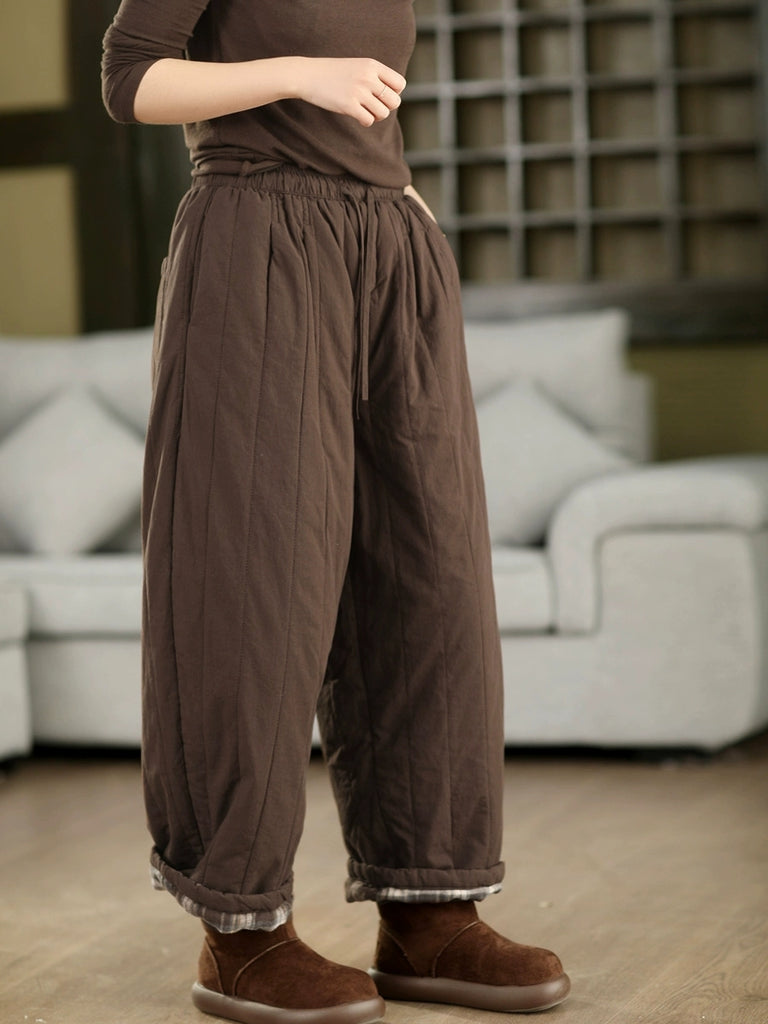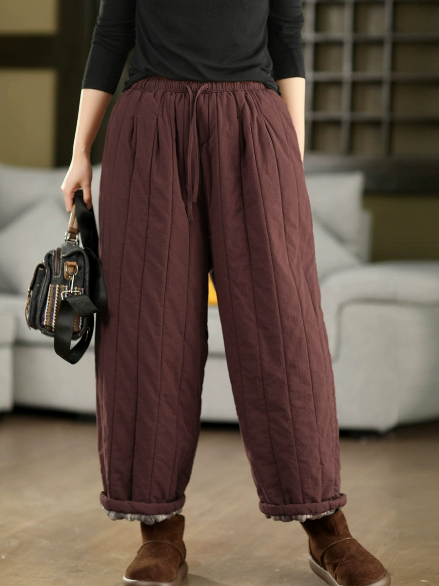 بنطلون نسائي شتوي مبطن مصنوع من القطن بنسبة 100% بلون نقي