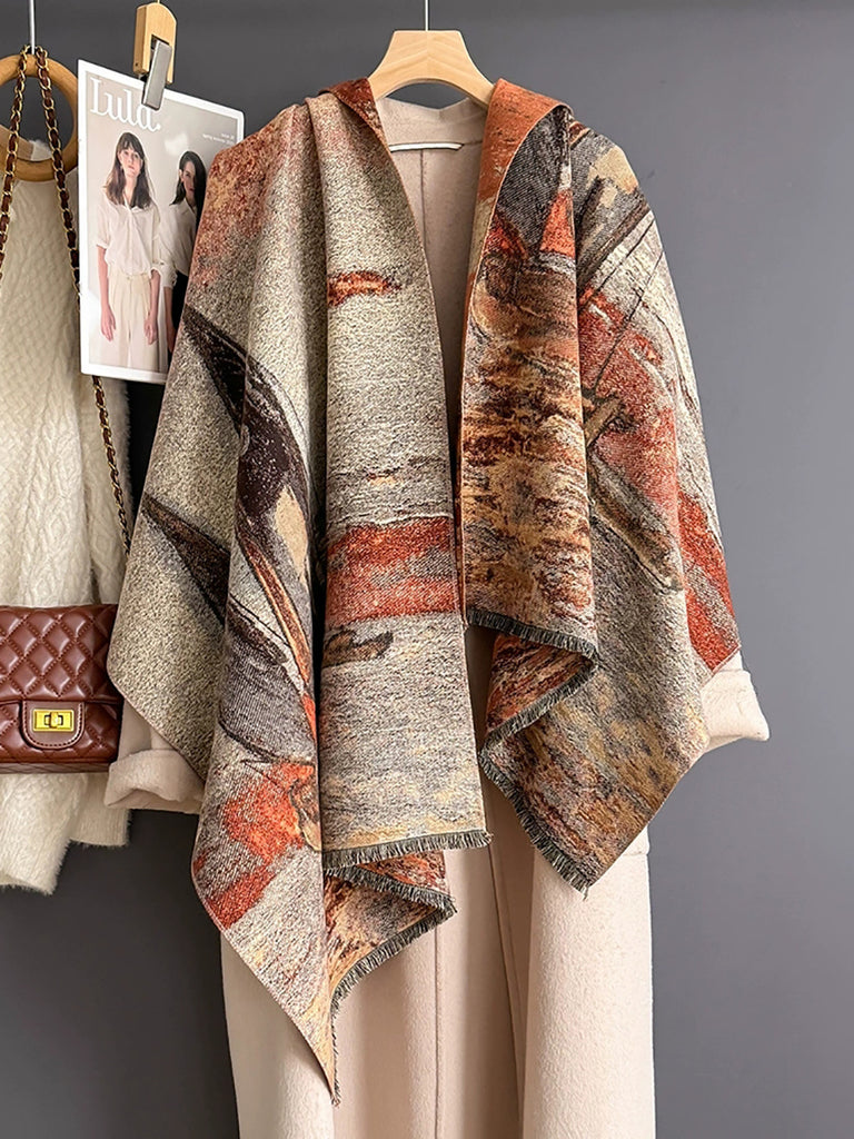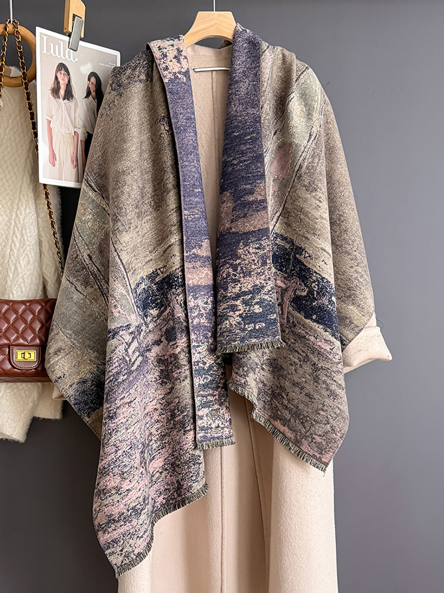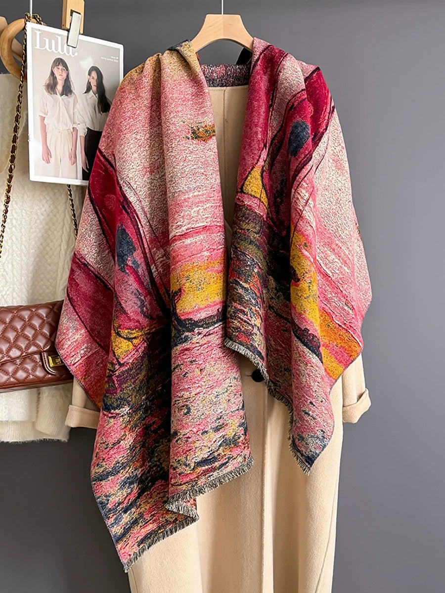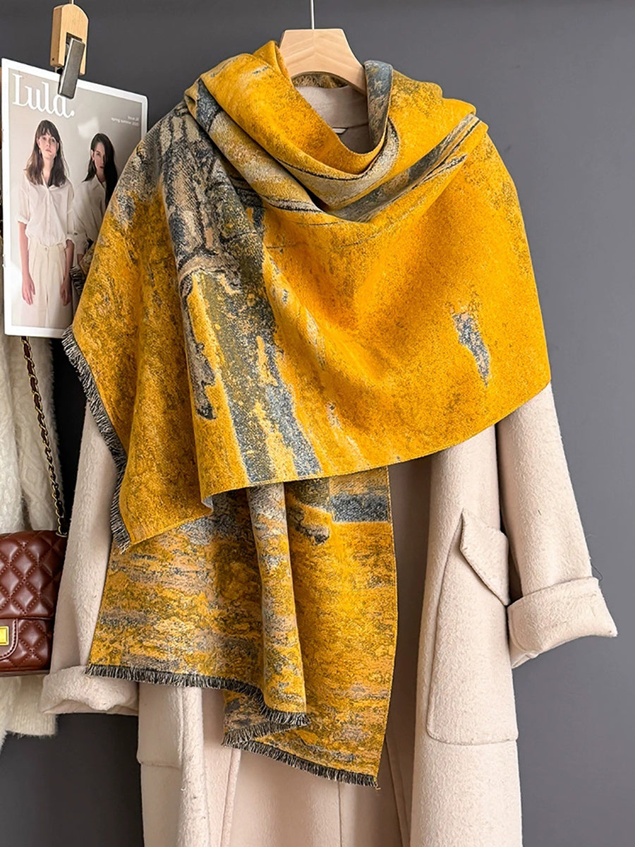 وشاح شال قارب شراعي بلوحة زيتية شتوية عتيقة