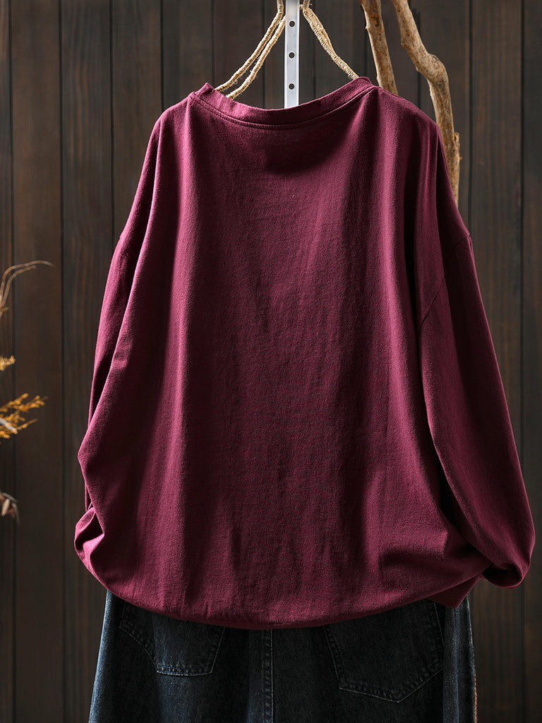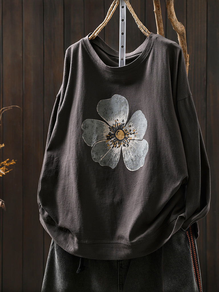 بلوزة نسائية من القطن برقبة دائرية مزينة بزهرة الخريف الفنية