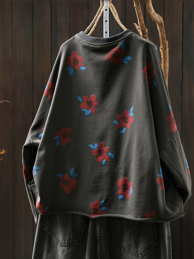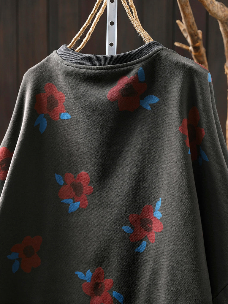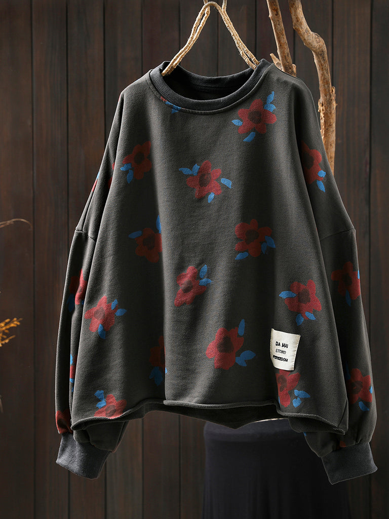 بلوزة نسائية من القطن برقبة دائرية مزينة بزهرة الخريف الفنية