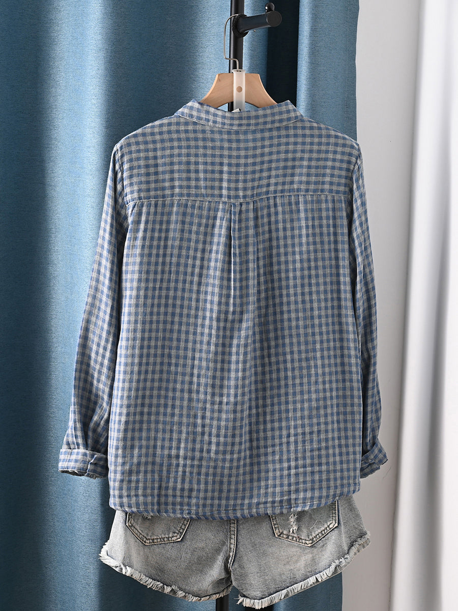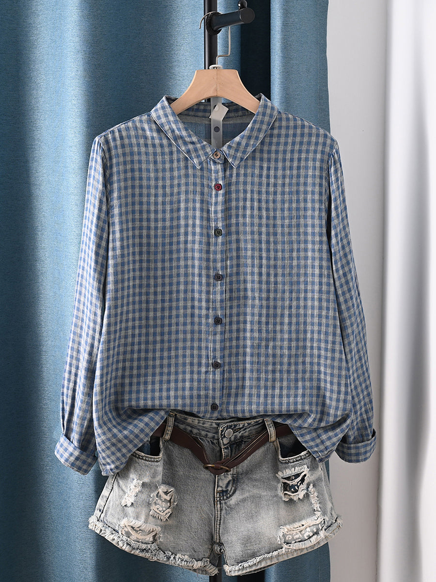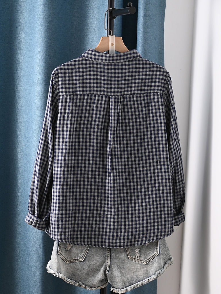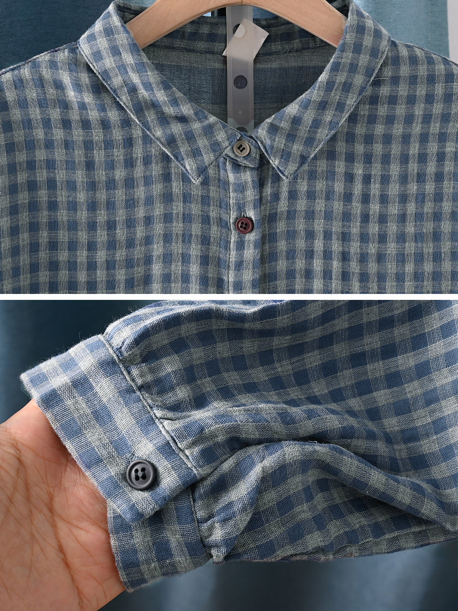 قميص نسائي خريفي منقوش بياقة مطوية من القطن بنسبة 100%