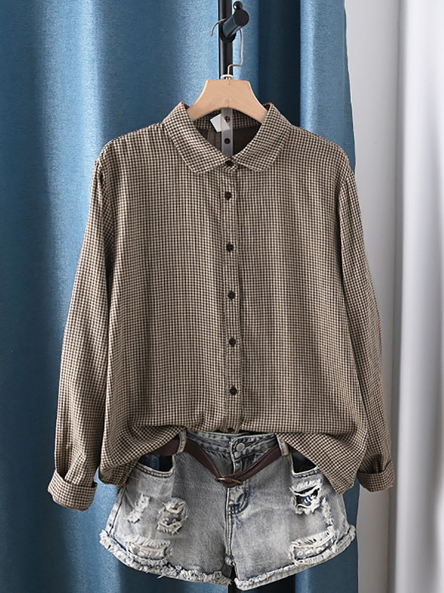 قميص نسائي ربيعي فني بنقشة مربعات، مصنوع من القطن بنسبة 100%