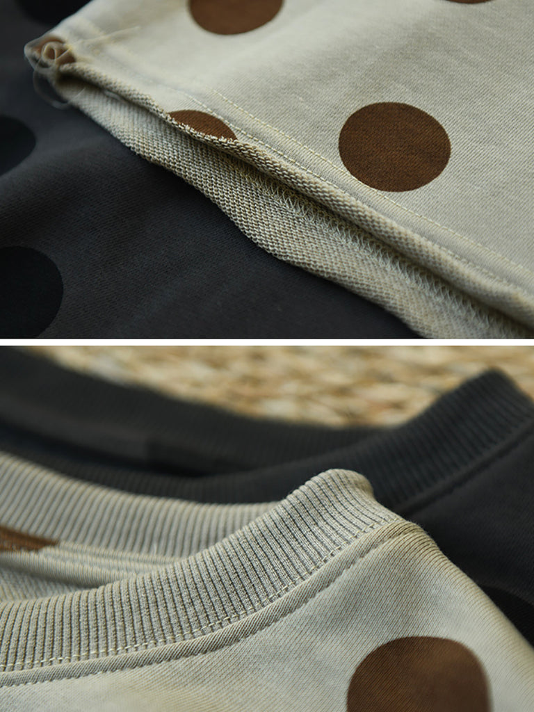 قميص نسائي كاجوال منقط للخريف، مصنوع من القطن بنسبة 100%، برقبة دائرية