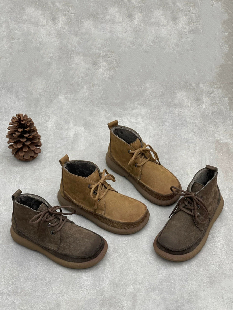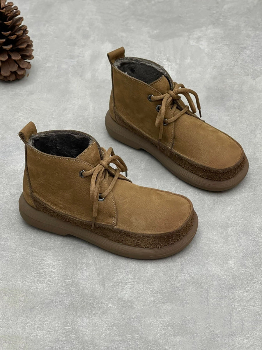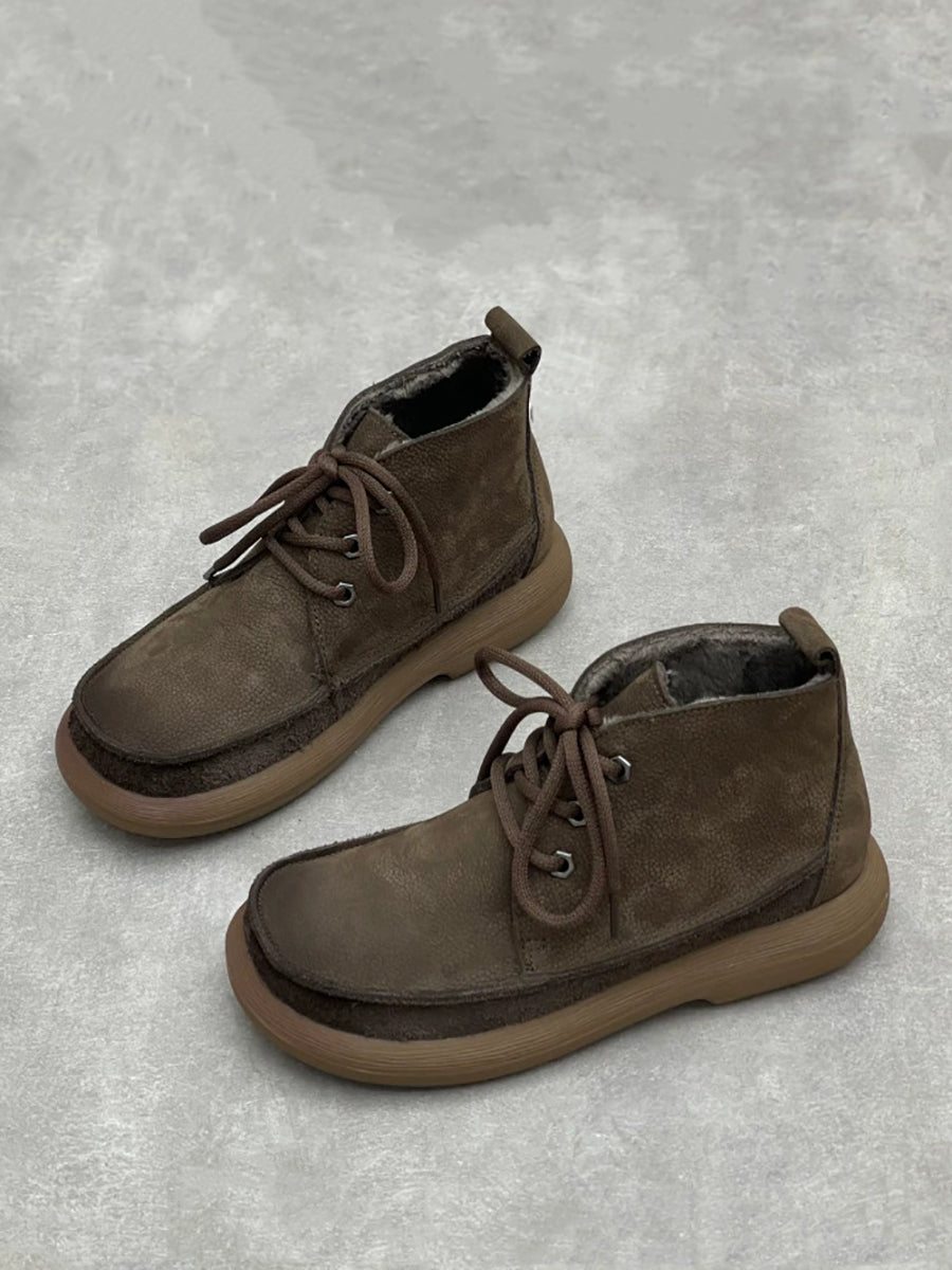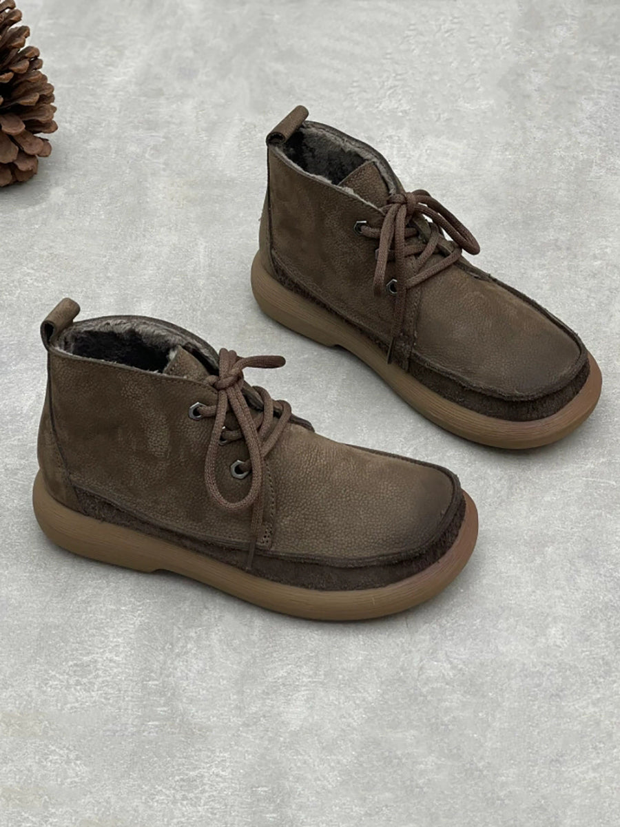 حذاء نسائي شتوي عتيق من الجلد الطبيعي يصل إلى الكاحل