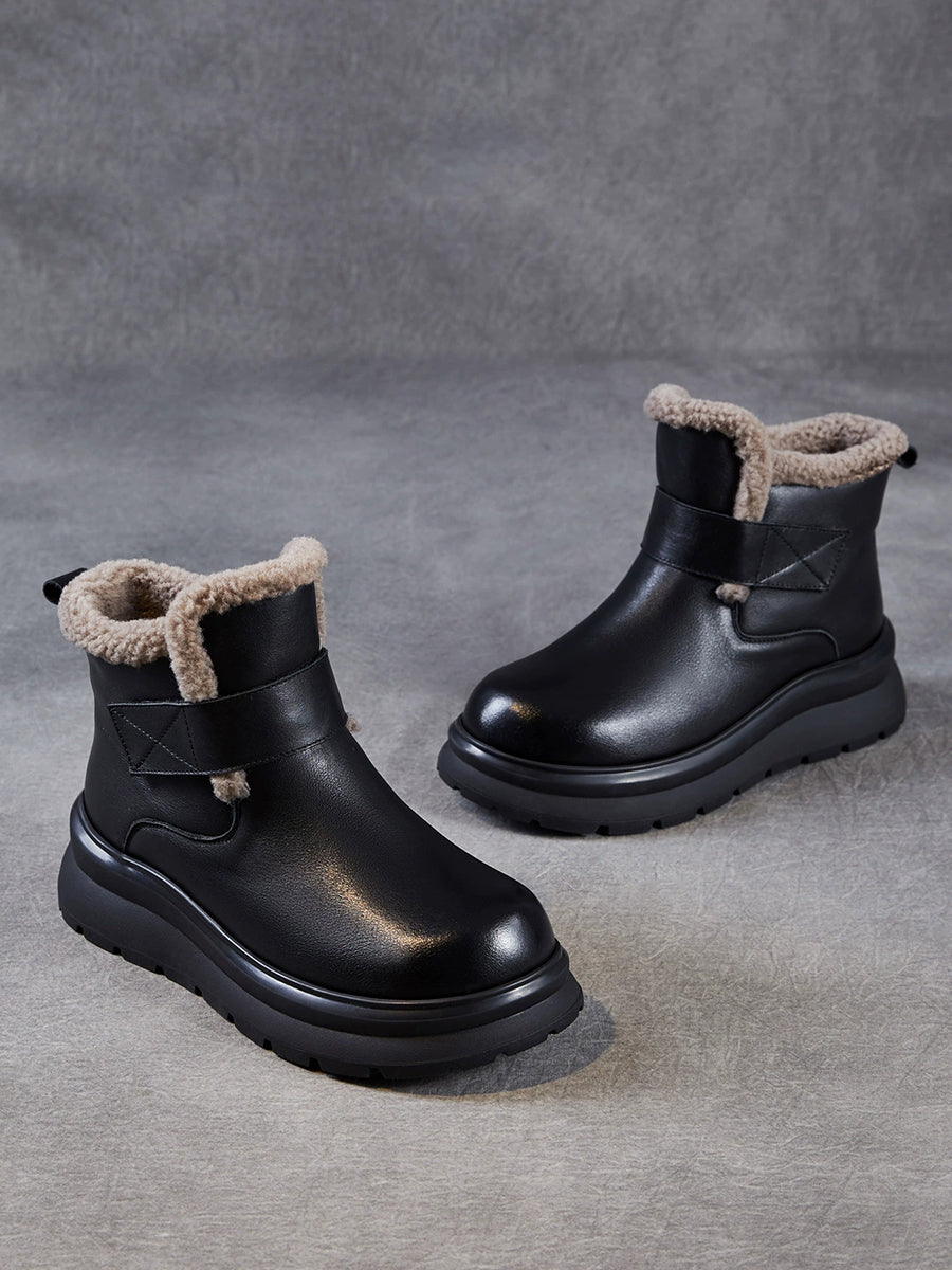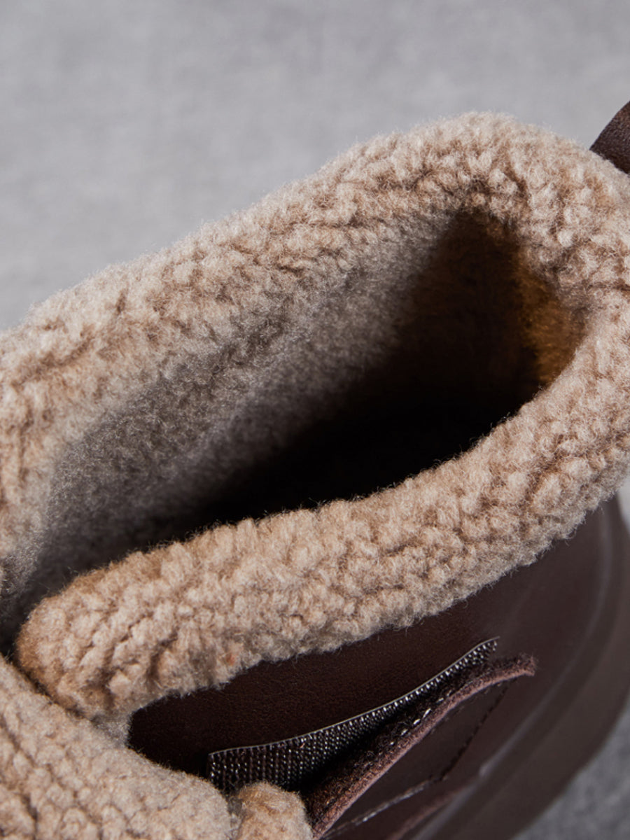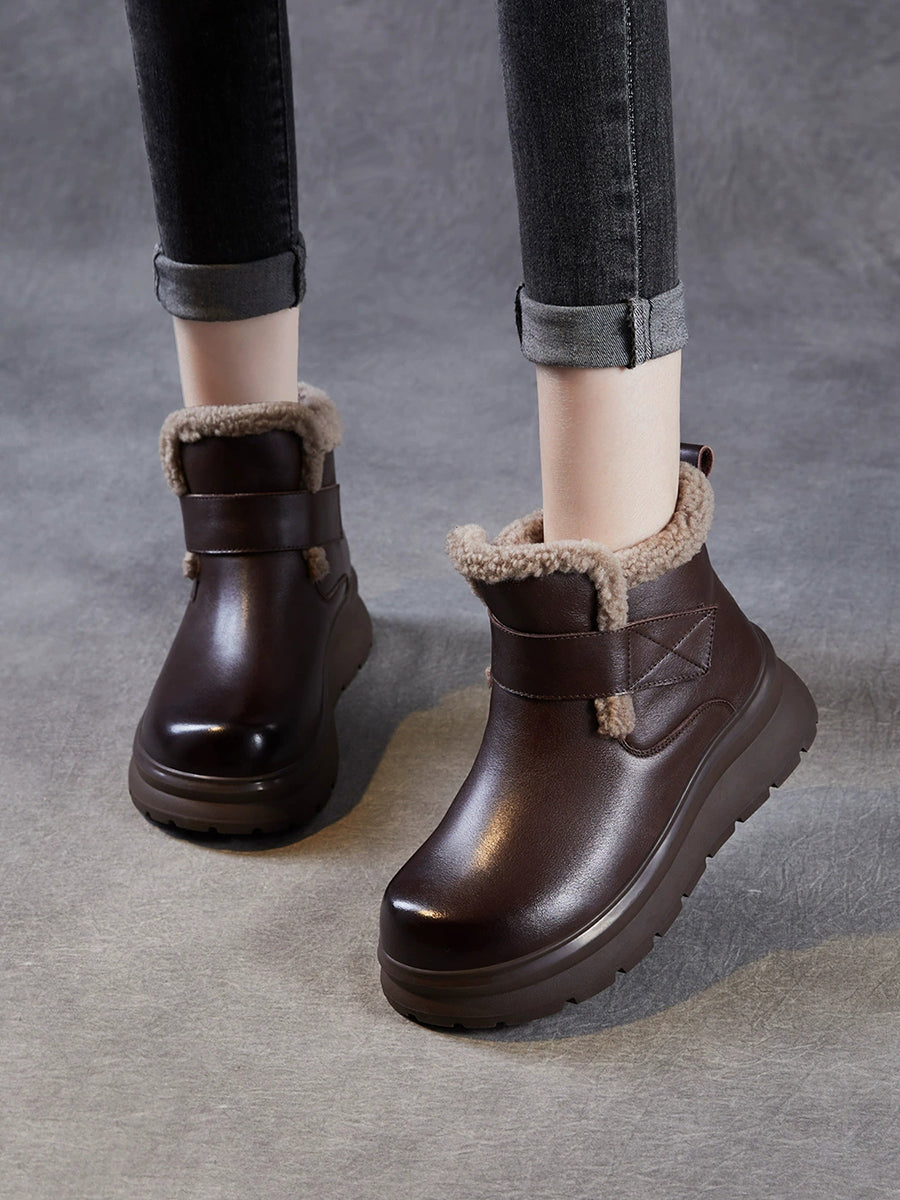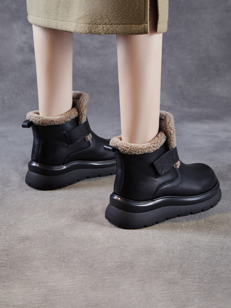حذاء نسائي شتوي مبطن بالصوف من الجلد الطبيعي