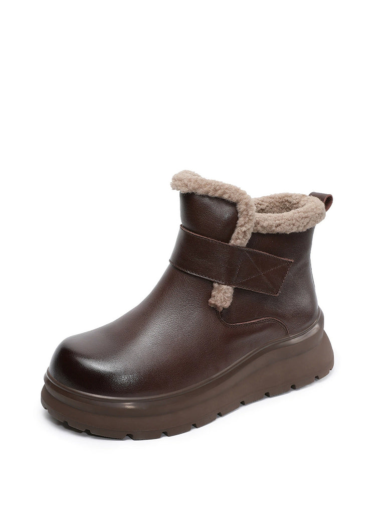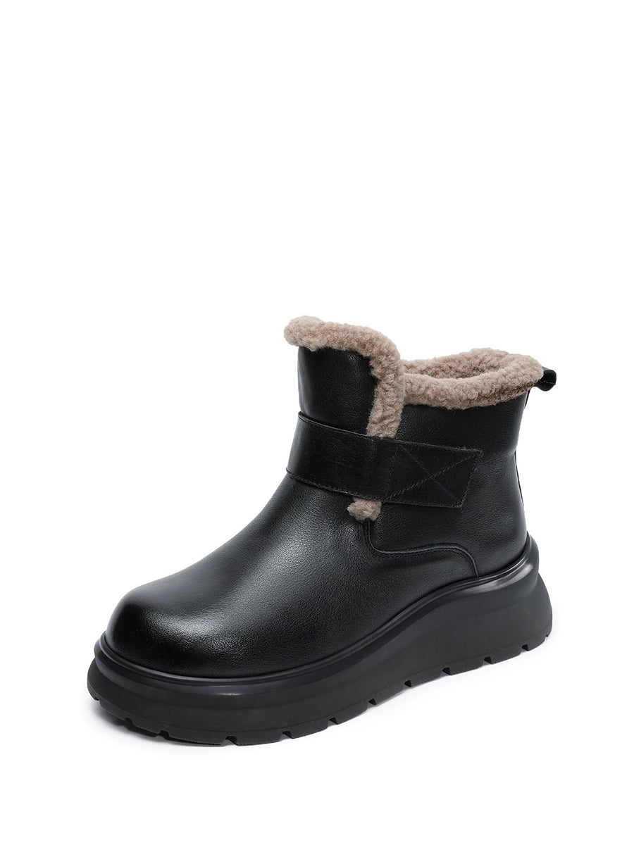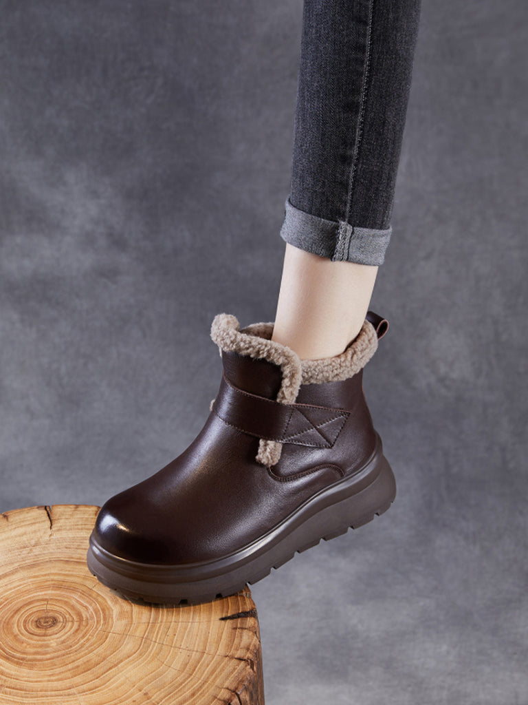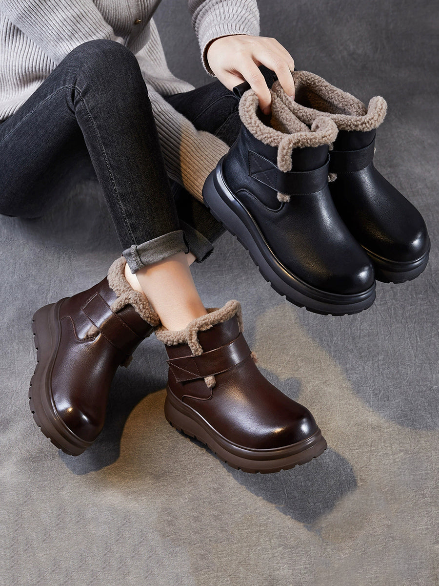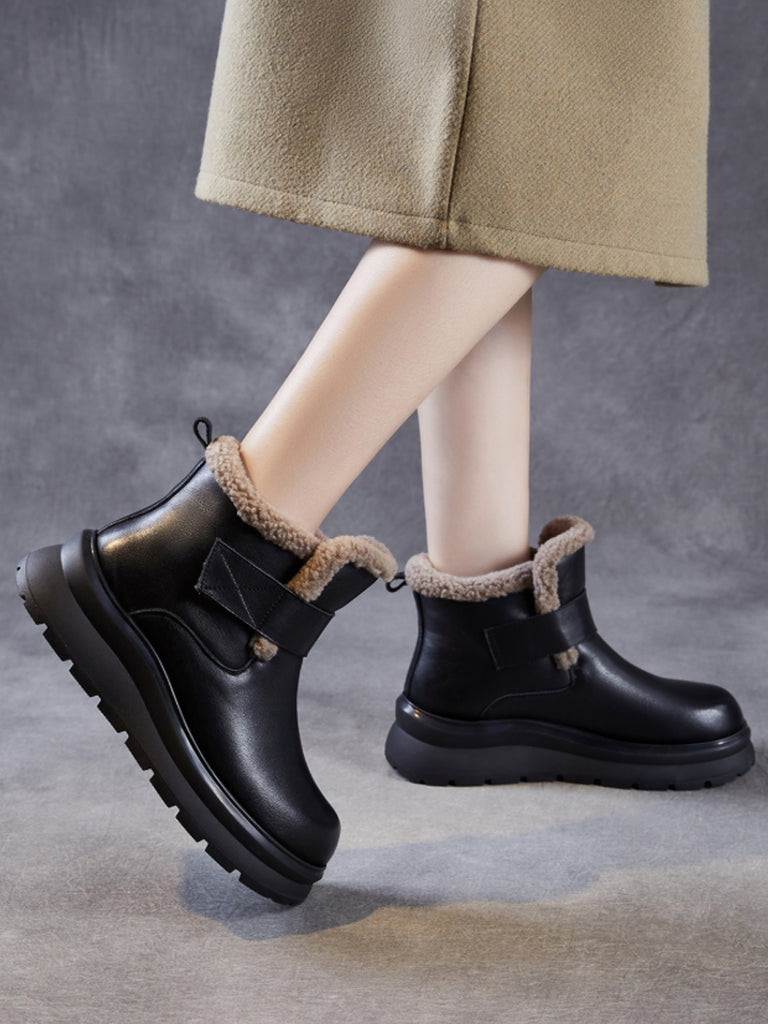 حذاء نسائي شتوي مبطن بالصوف من الجلد الطبيعي