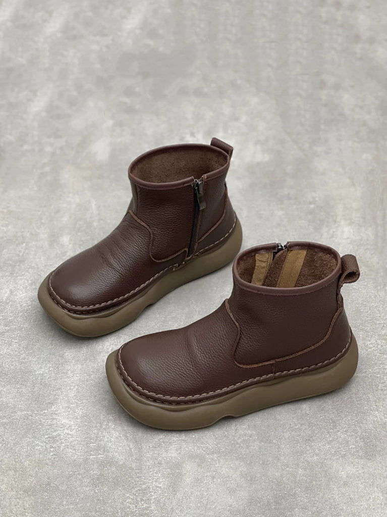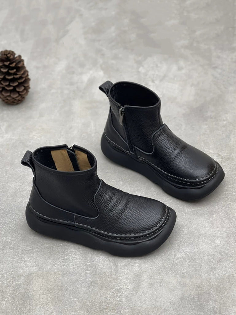 حذاء نسائي شتوي مسطح من الجلد الطبيعي
