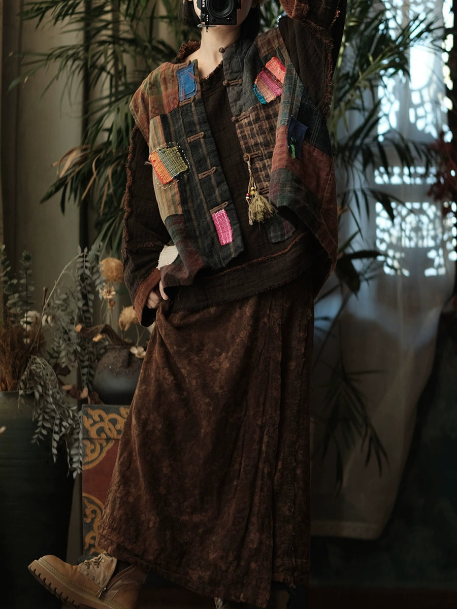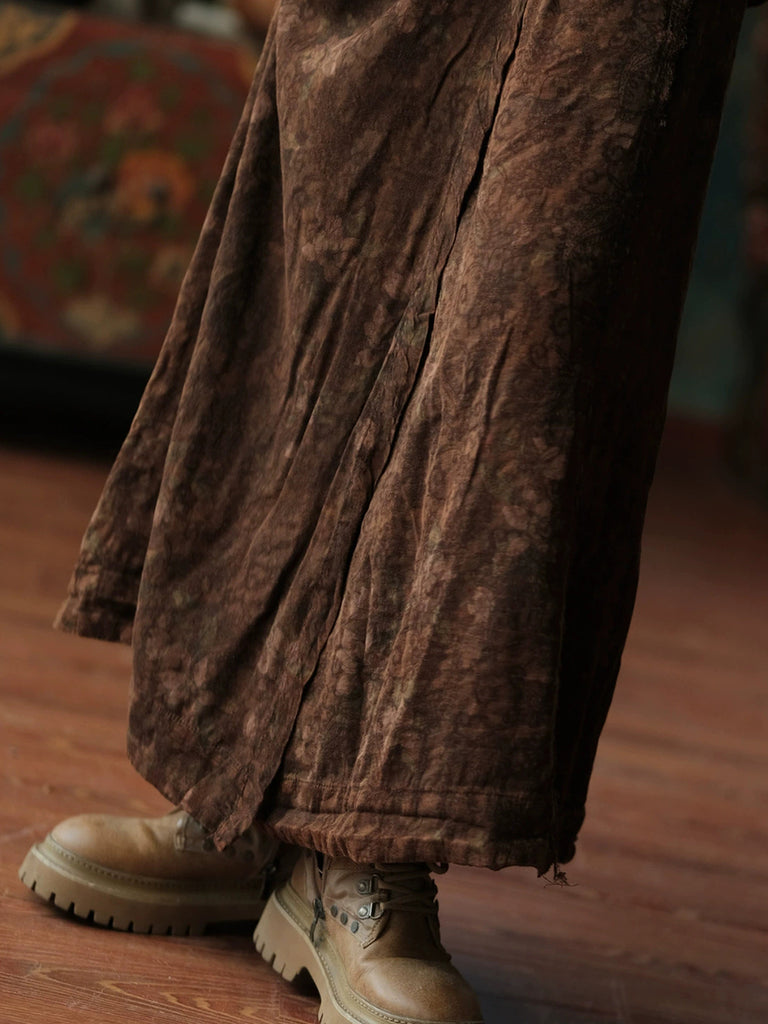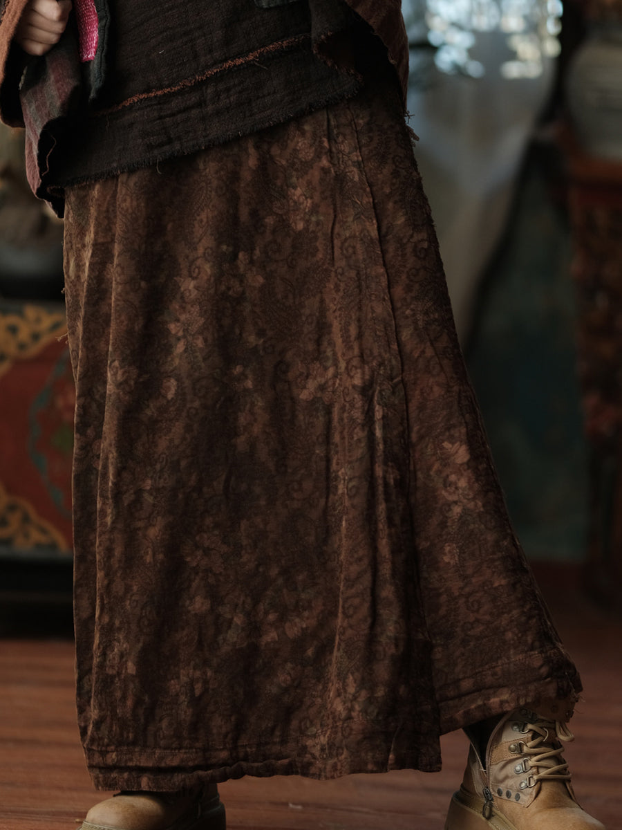 تنورة نسائية مستقيمة من القطن بتصميم زهور عتيقة لفصل الخريف