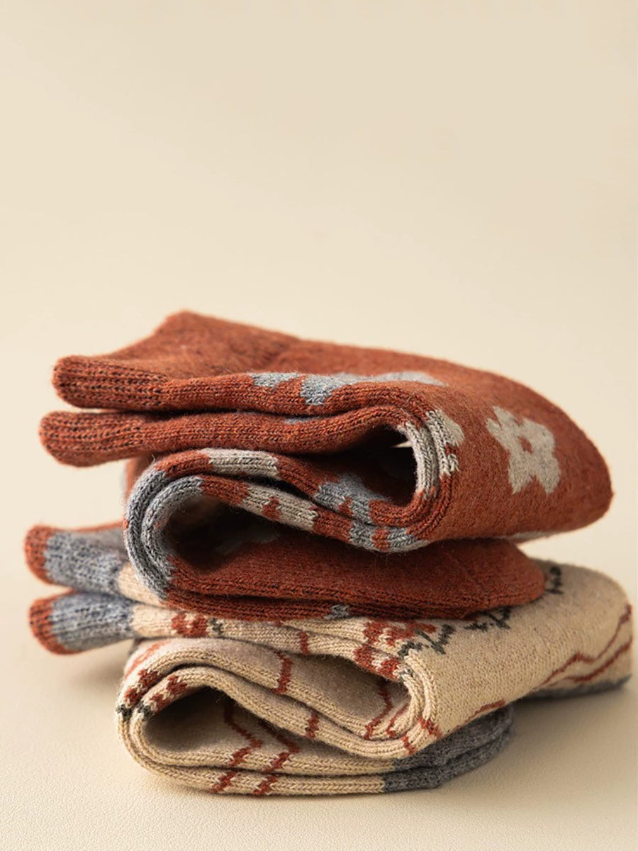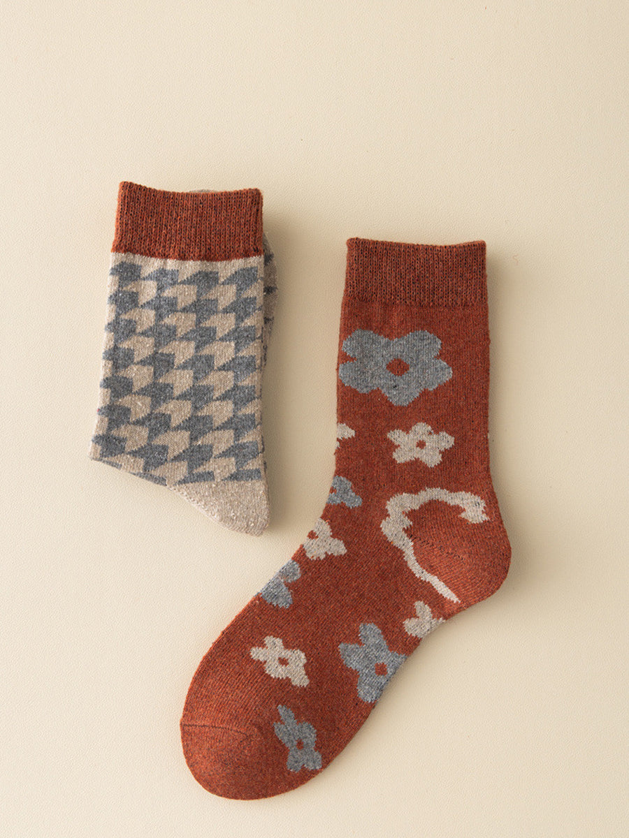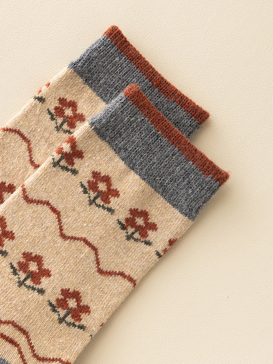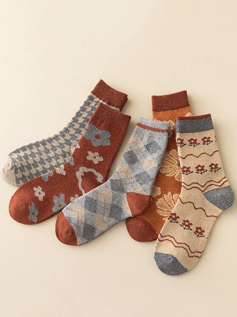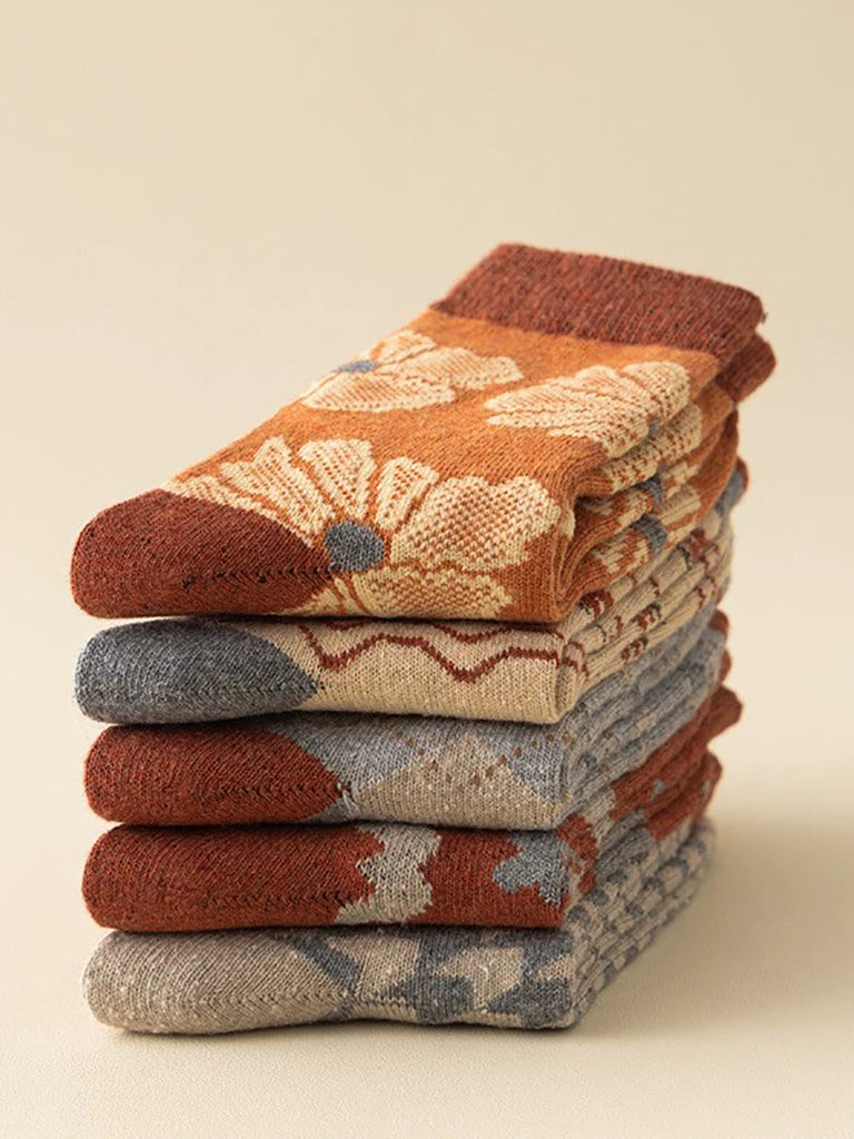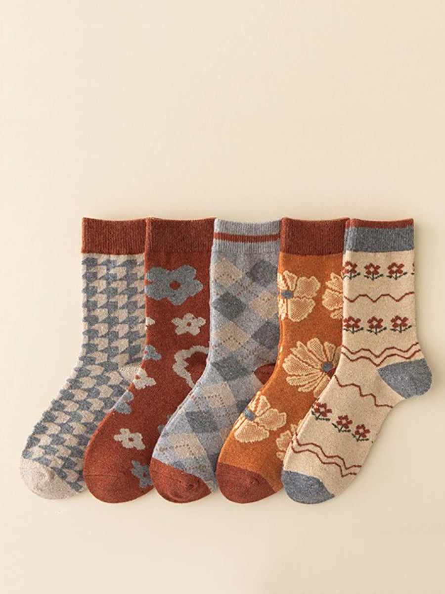 5 أزواج من الجوارب النسائية الدافئة بنقشة زهور عتيقة