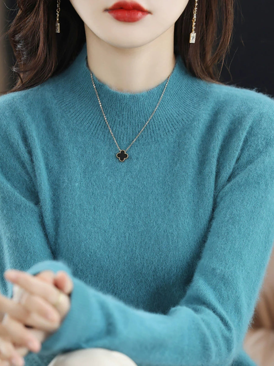 كنزة نسائية صيفية كاجوال بلون موحد بياقة نصف مدورة