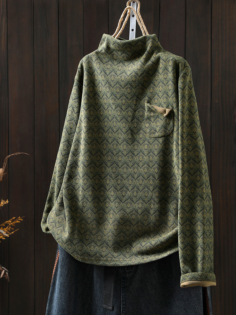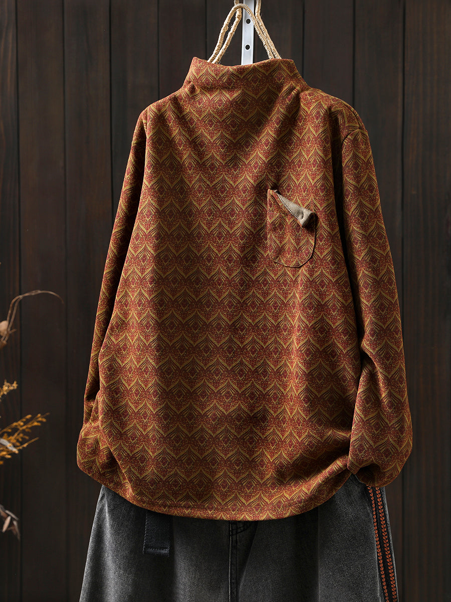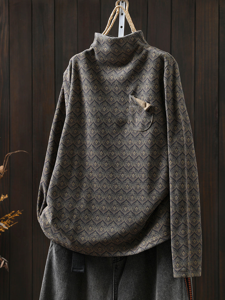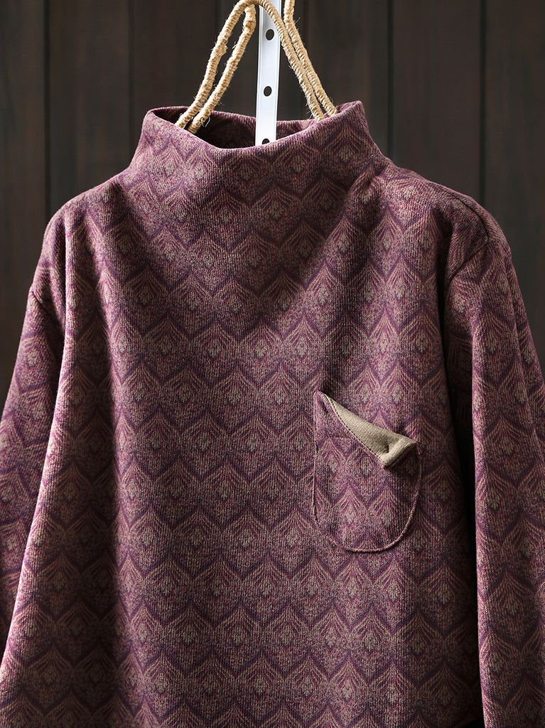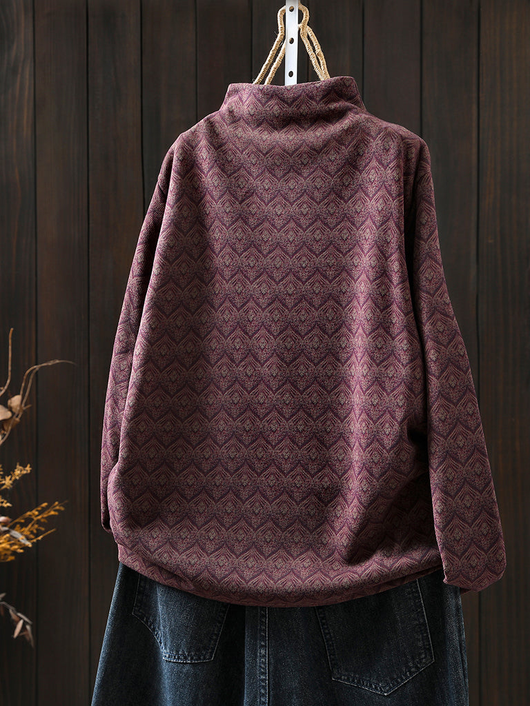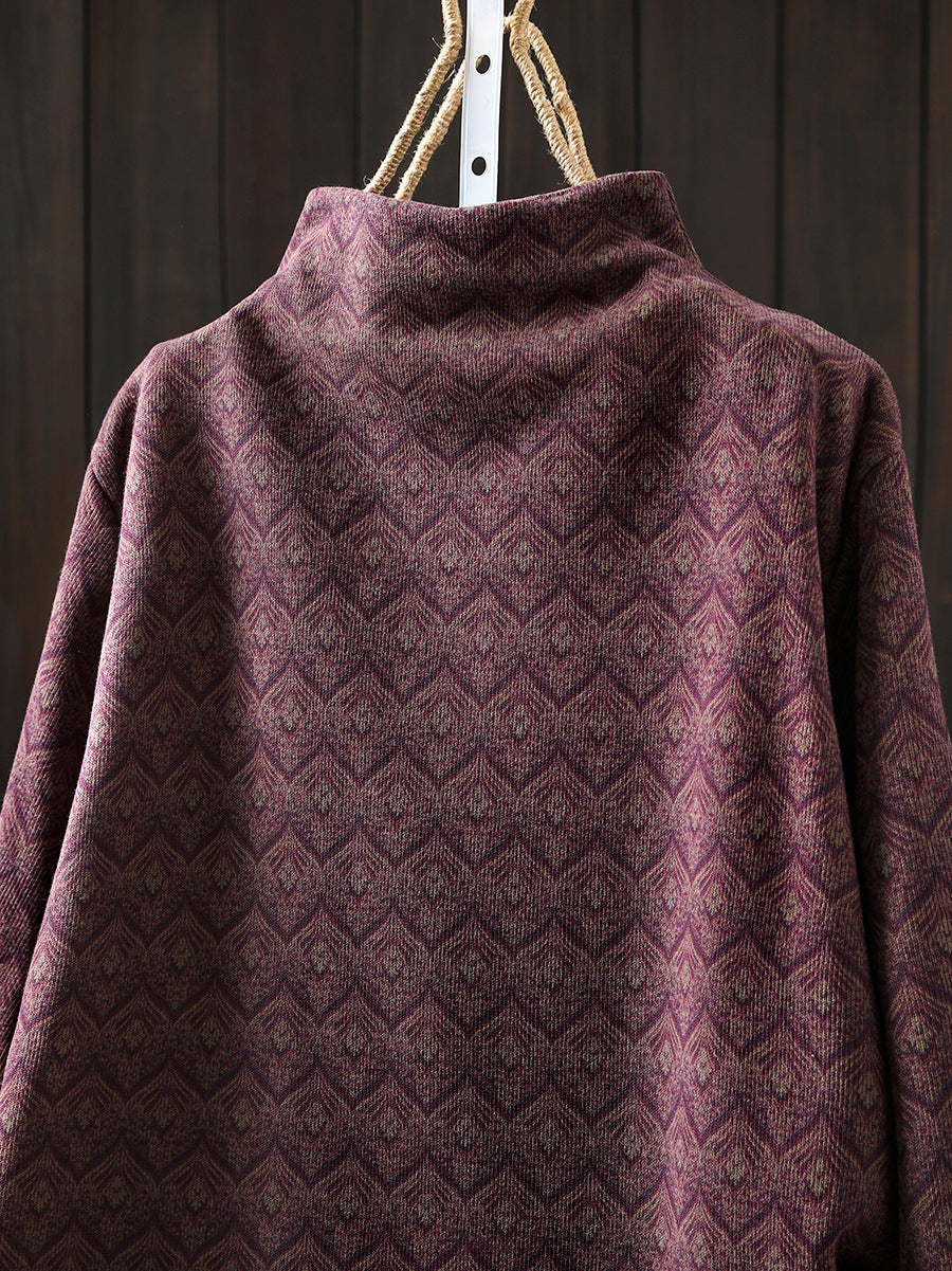 بلوزة نسائية من القطن بنصف رقبة مدورة مخططة لفصل الخريف