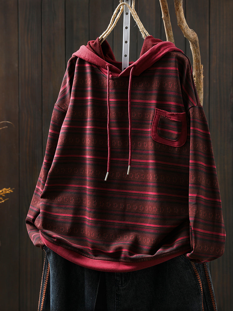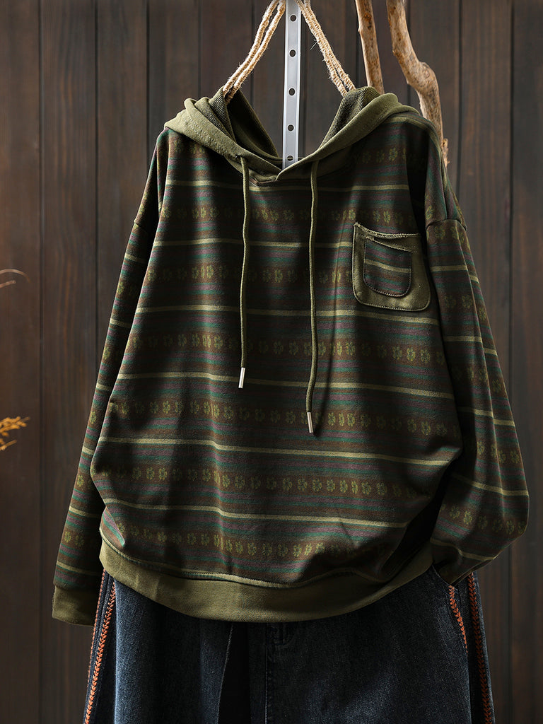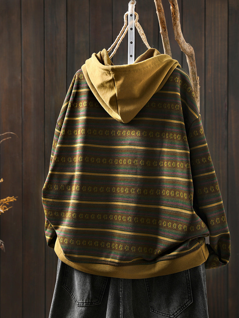 هودي نسائي مخطط خريفي عتيق مصنوع من القطن بنسبة 100%