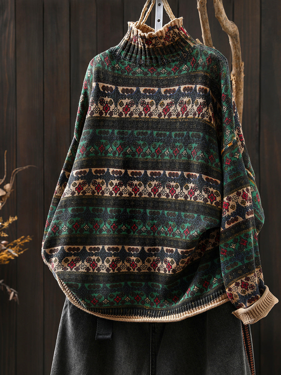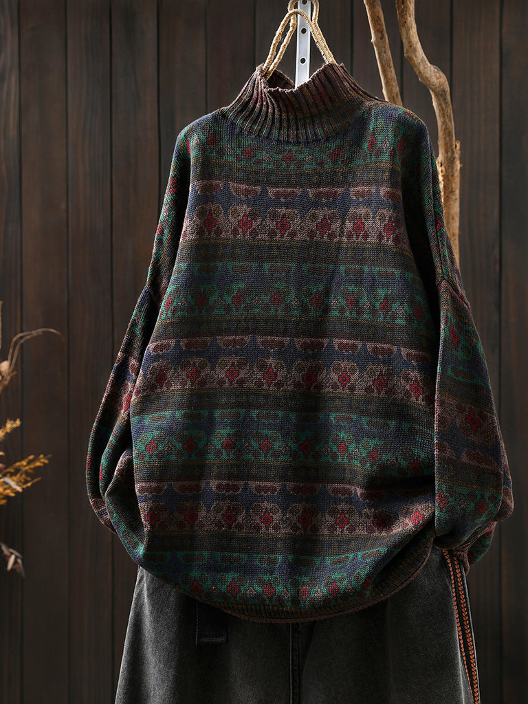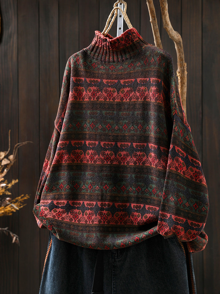 سترة نسائية مخططة من القطن بنصف رقبة مدورة بتصميم خريفي عتيق