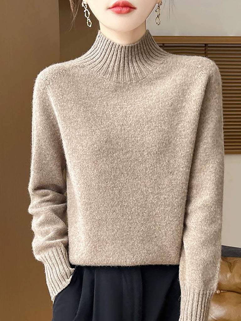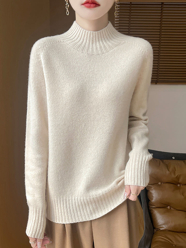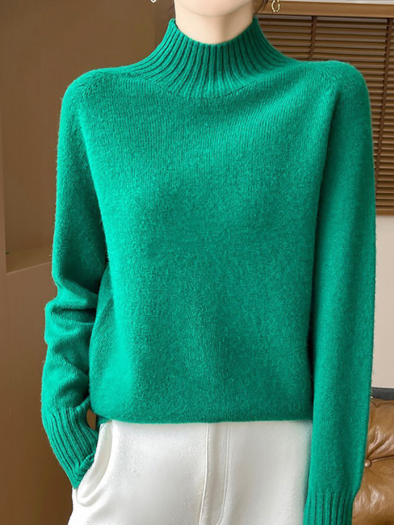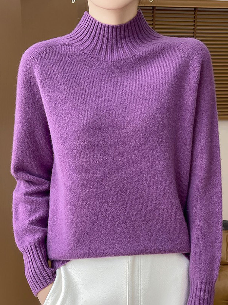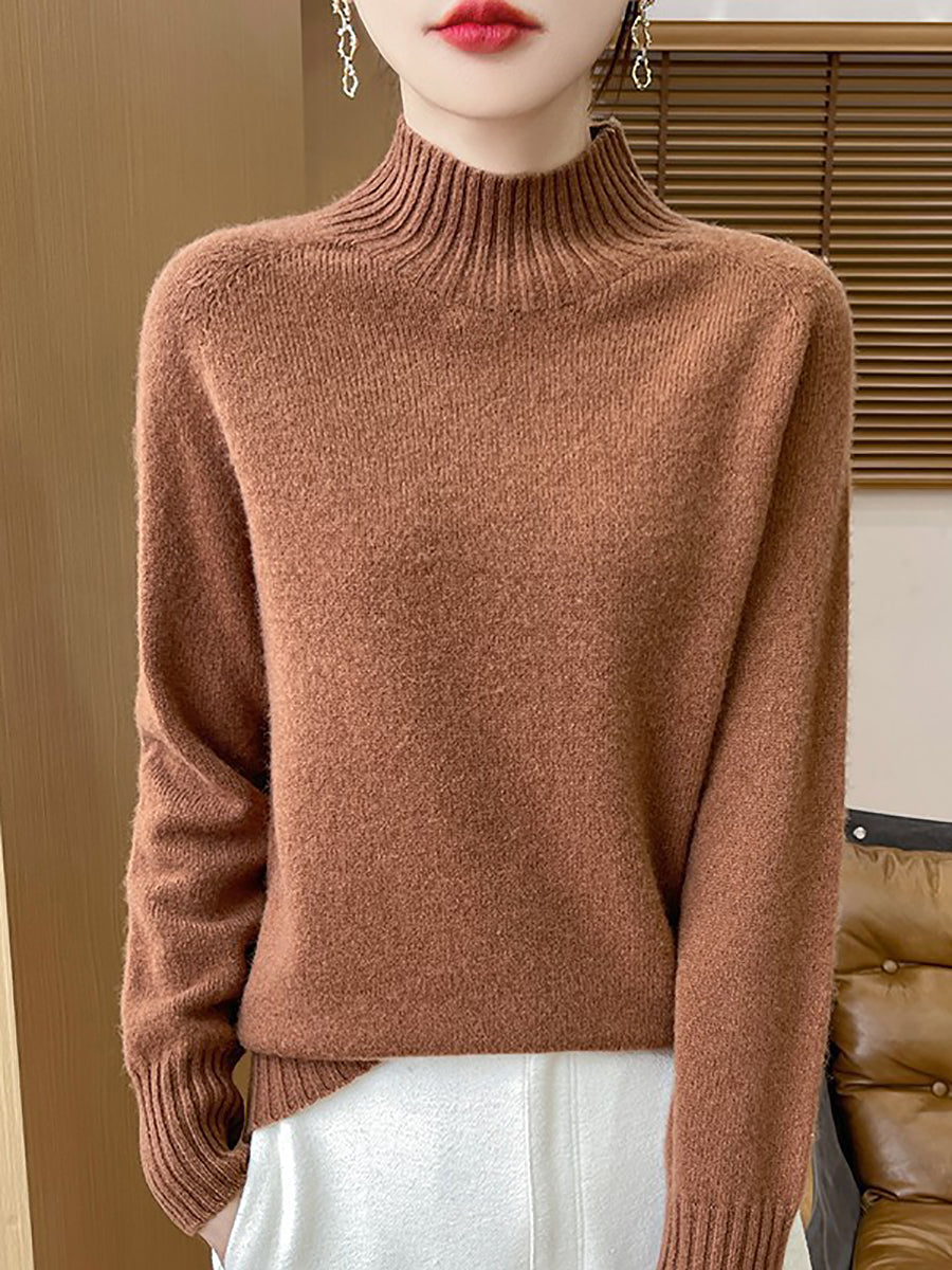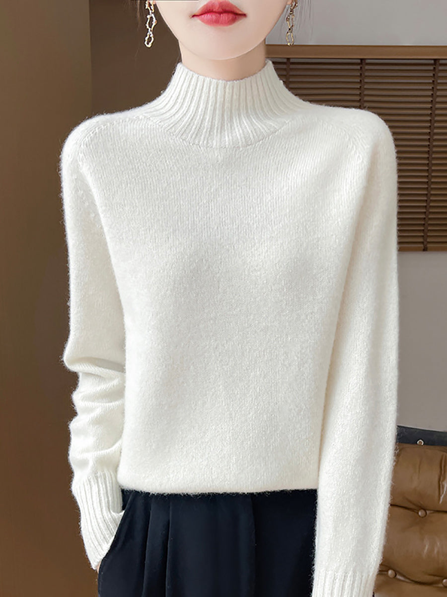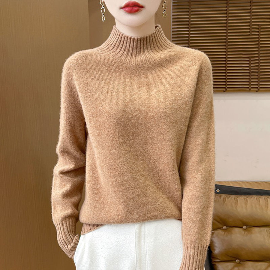 سترة نسائية خريفية فنية بلون نقي بنصف رقبة مدورة