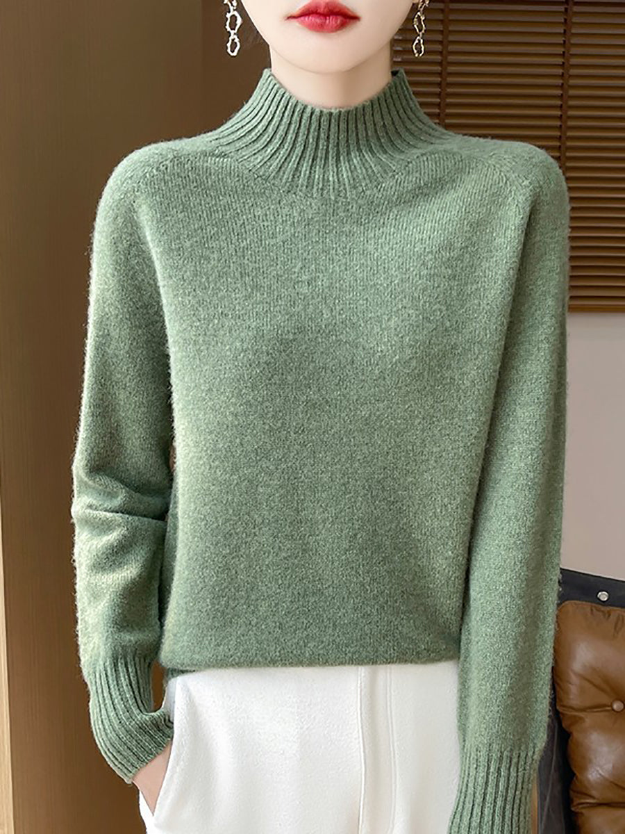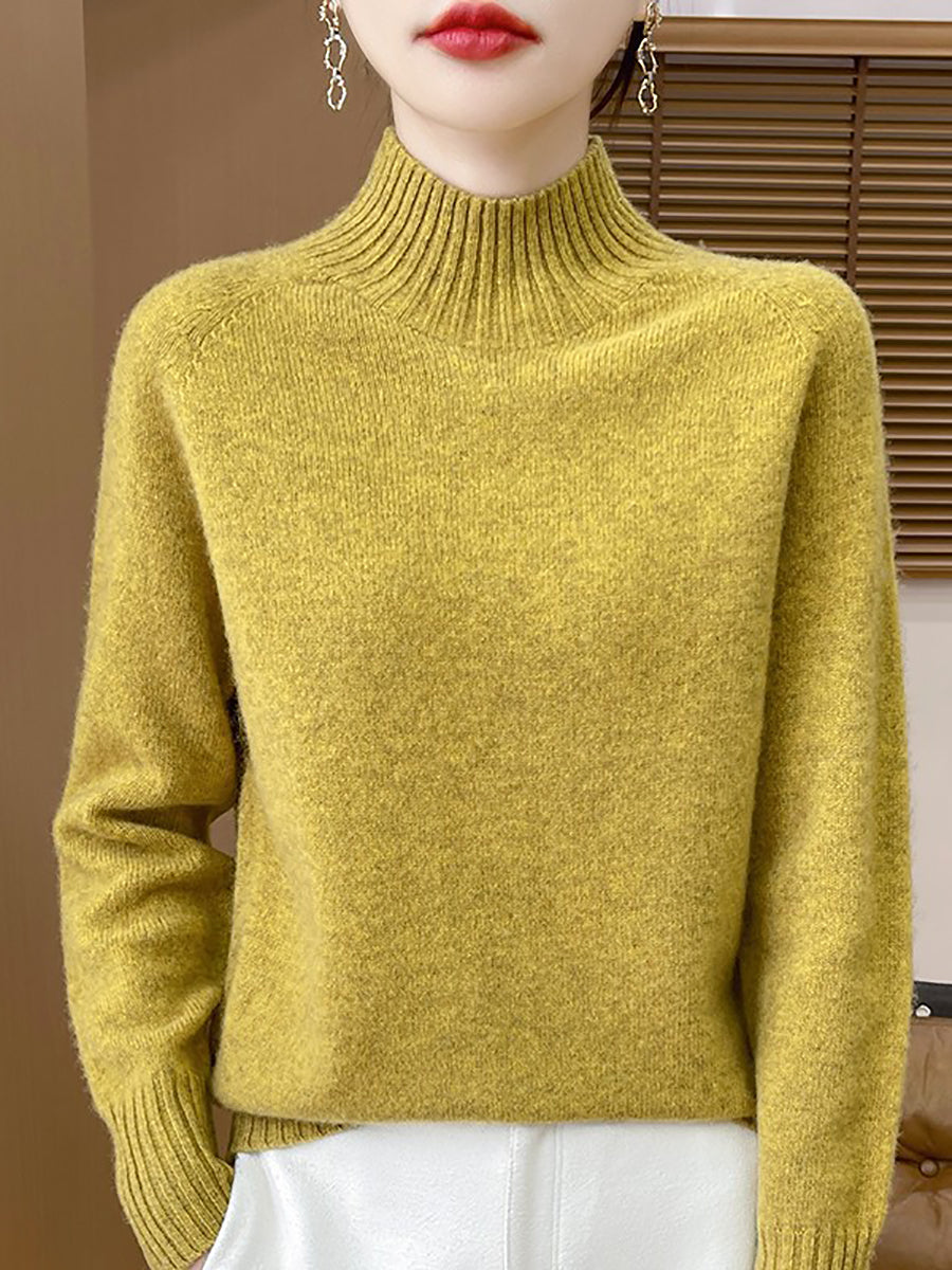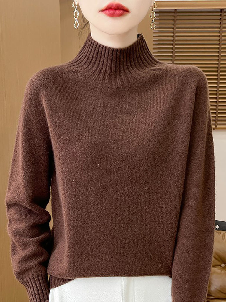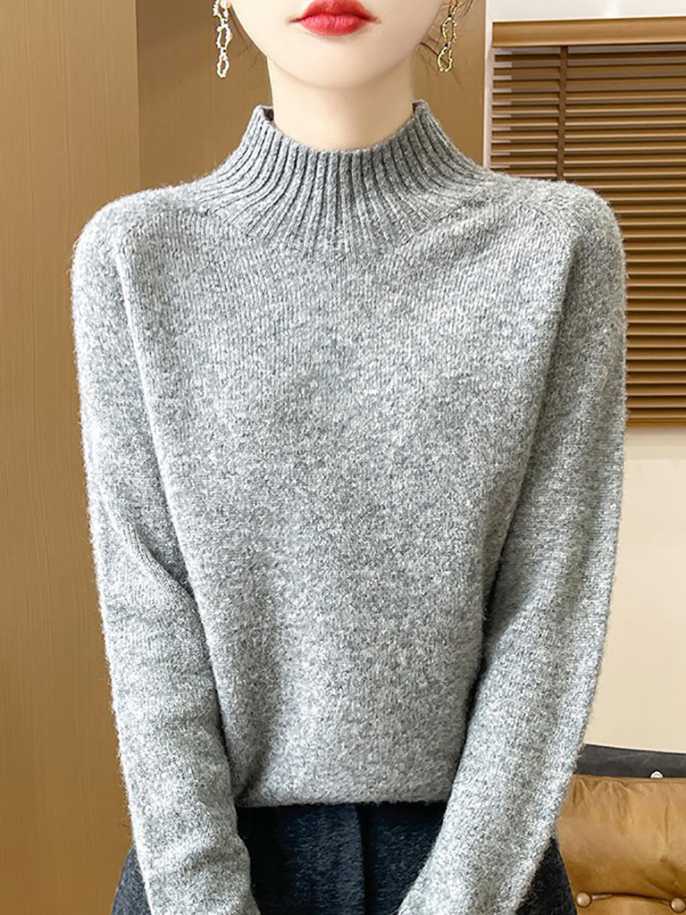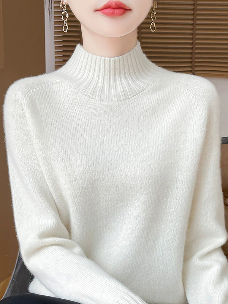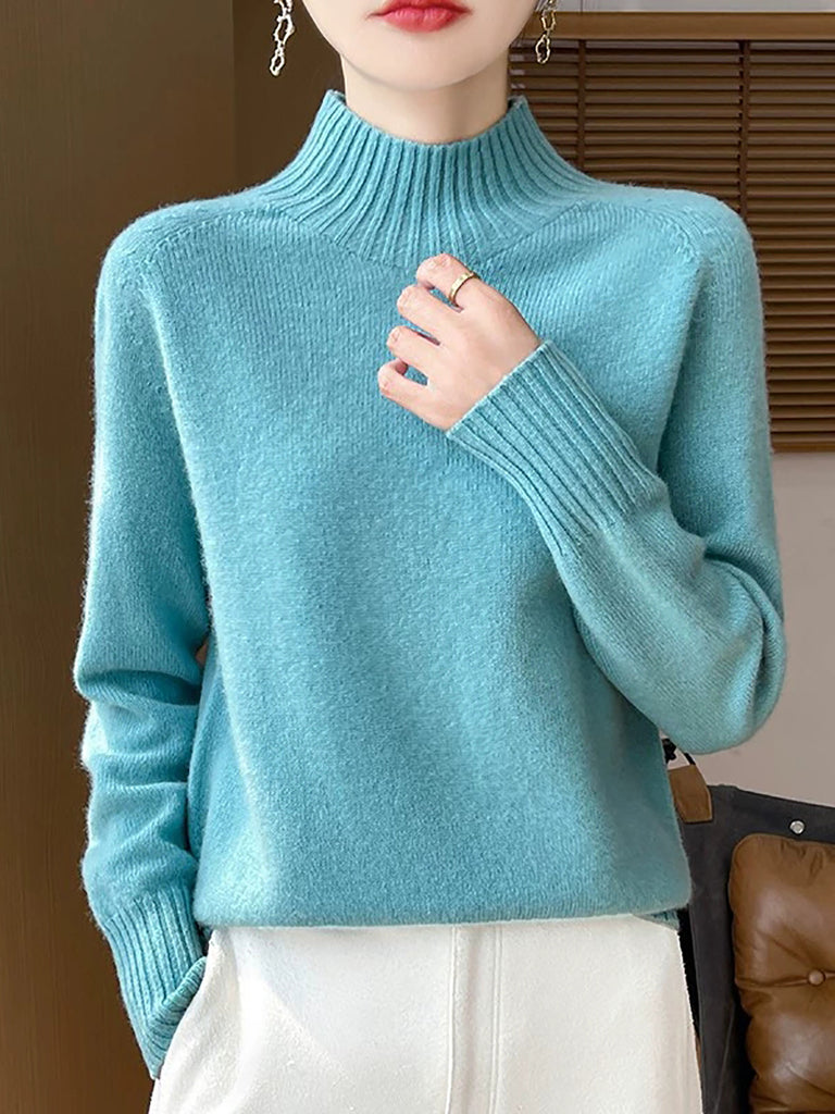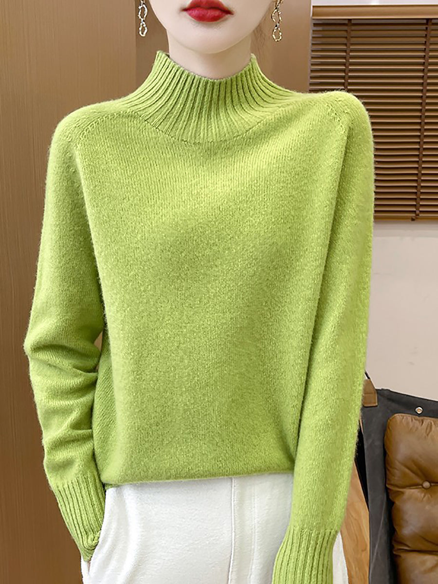 سترة نسائية خريفية فنية بلون نقي بنصف رقبة مدورة