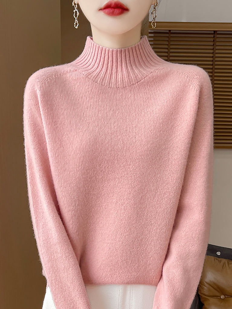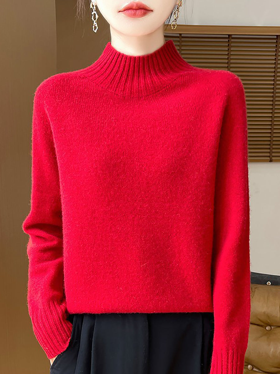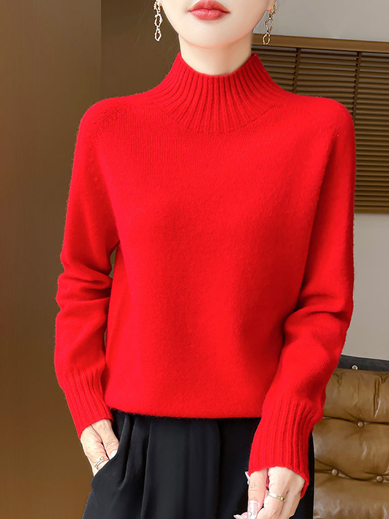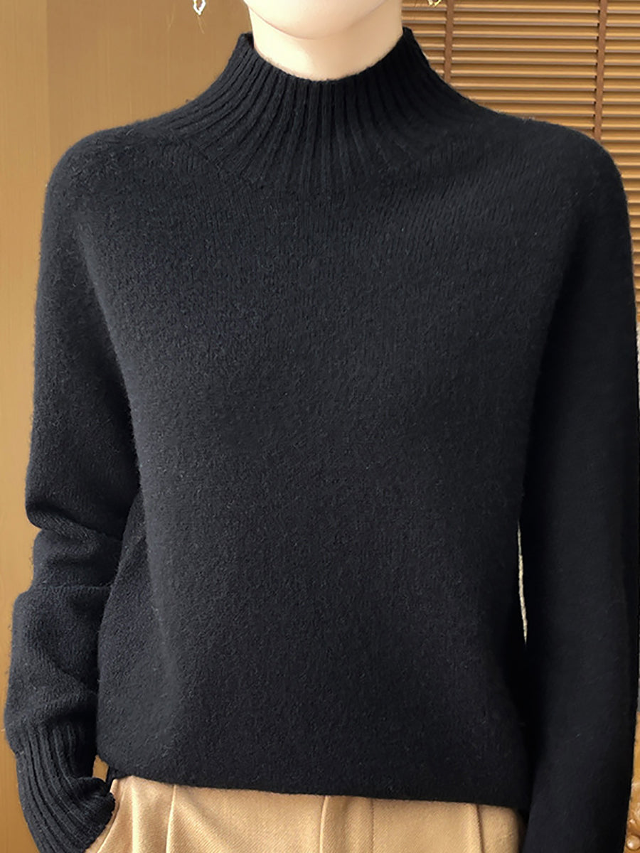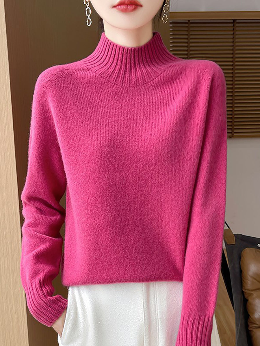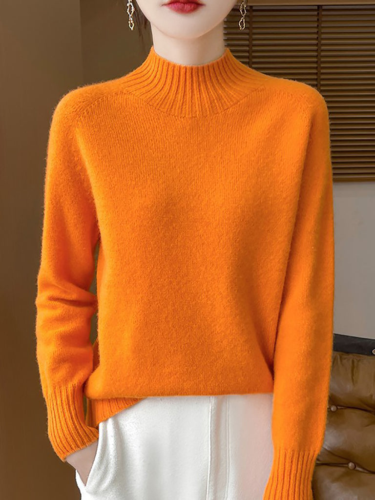 سترة نسائية خريفية فنية بلون نقي بنصف رقبة مدورة