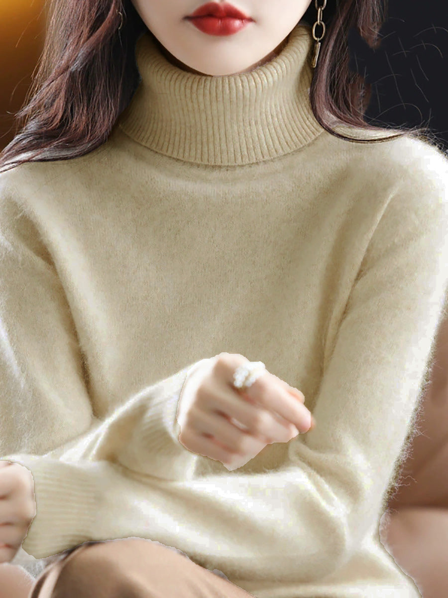 سترة نسائية كاجوال من الصوف المحبوك برقبة عالية لفصل الخريف