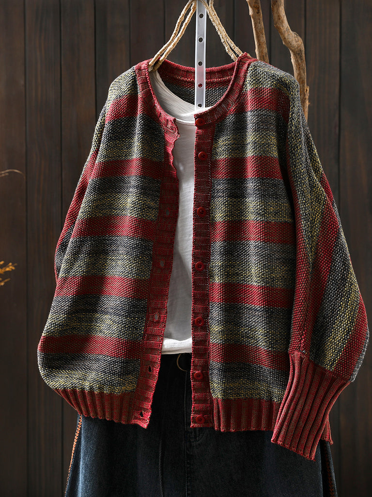 معطف نسائي خريفي مخطط بألوان متعددة برقبة دائرية