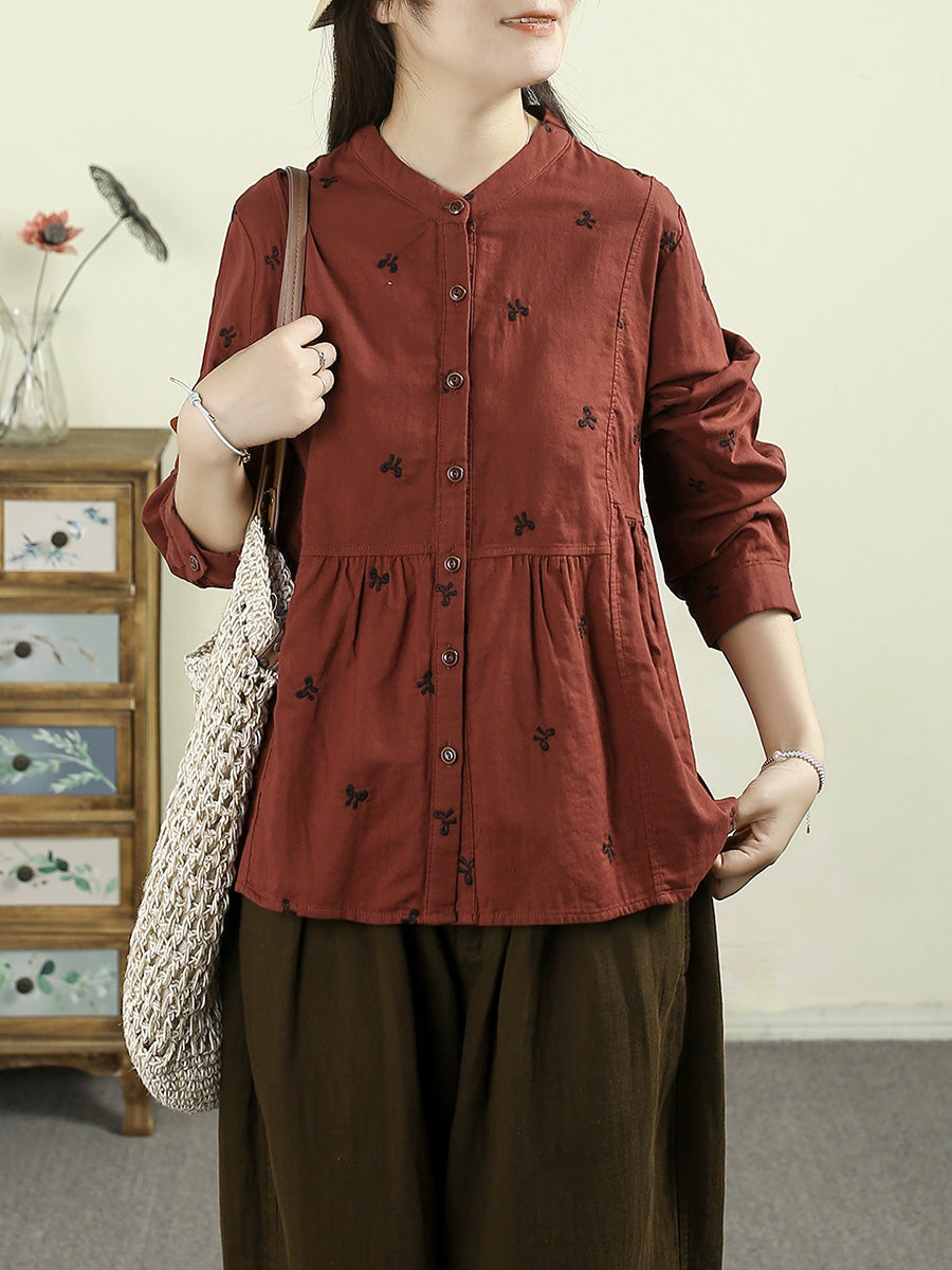 قميص نسائي خريفي عتيق مطرز 100% قطن بياقة واقفة