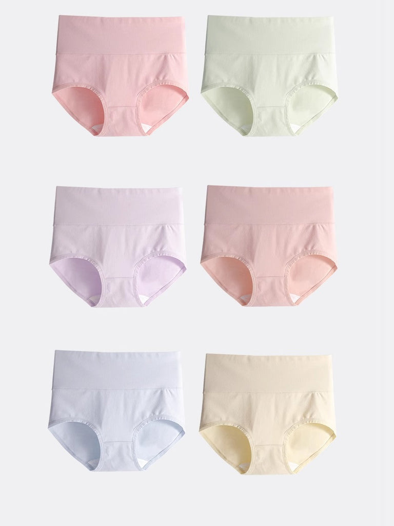 6 قطع ملابس داخلية نسائية كاجوال بلون نقي بخصر مرتفع