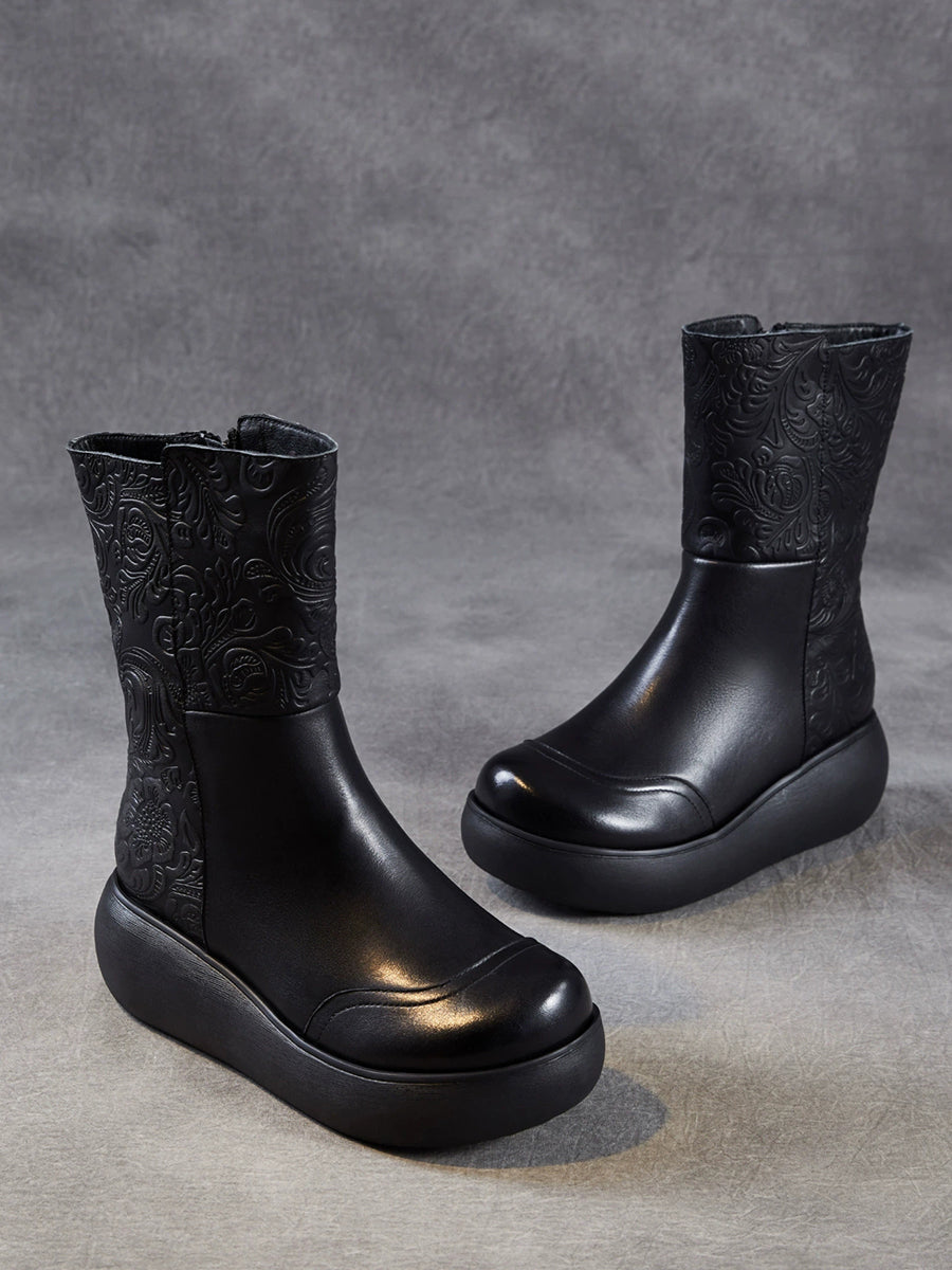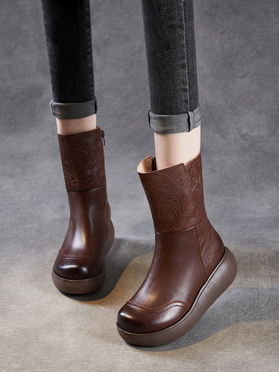 حذاء نسائي من الجلد العتيق مبطن بالصوف