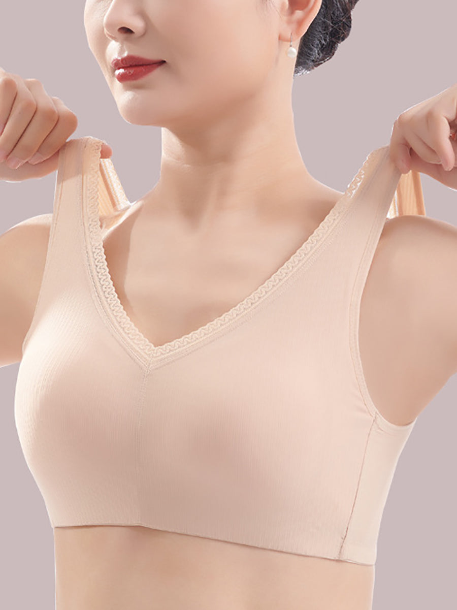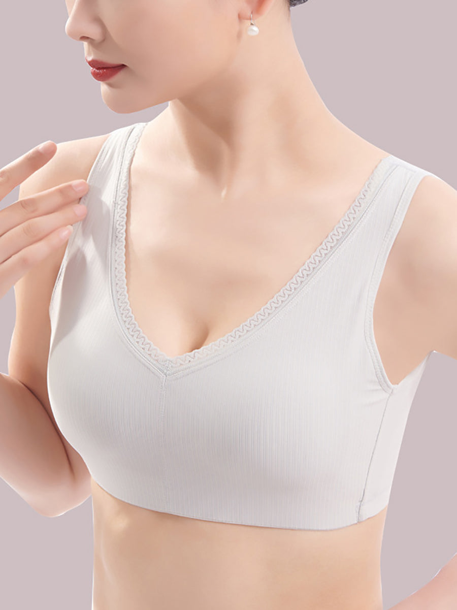 Women Artsy Pure Color One-piece Wireless Bra