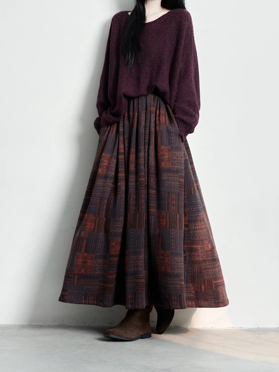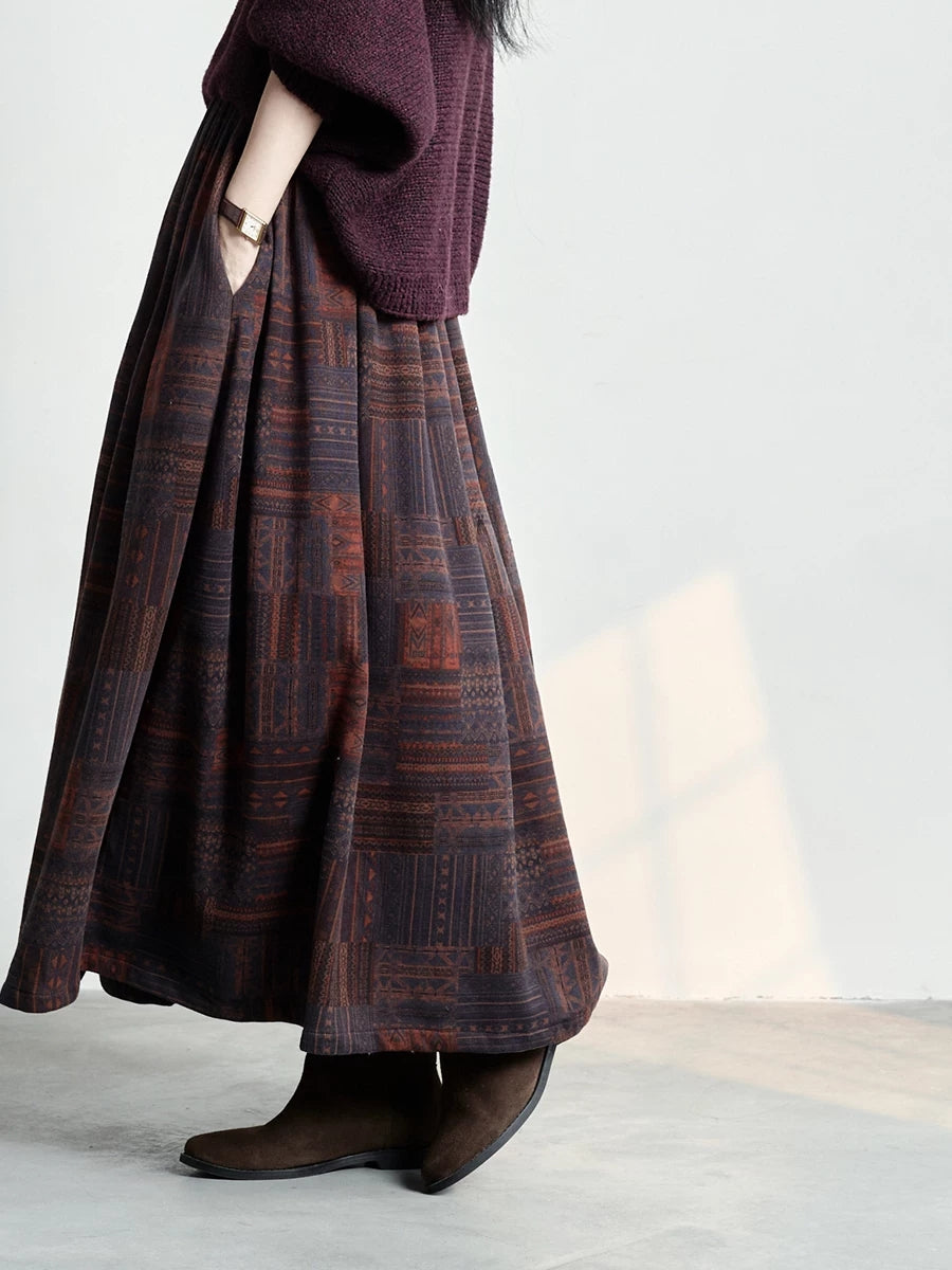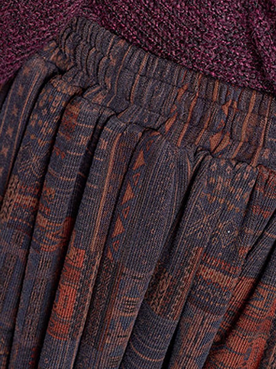 Women Bohemia Patchwork Pleated A-Shape Skirt