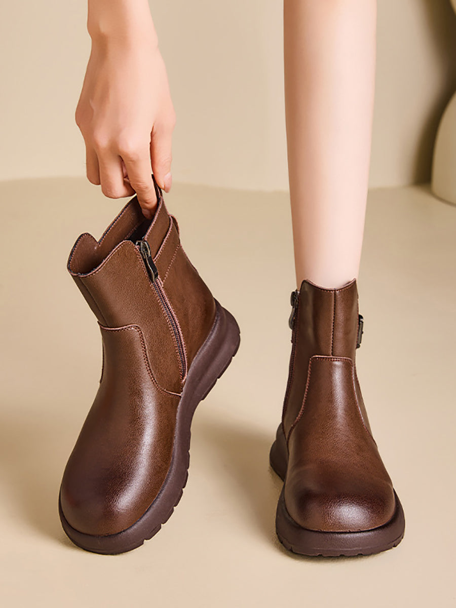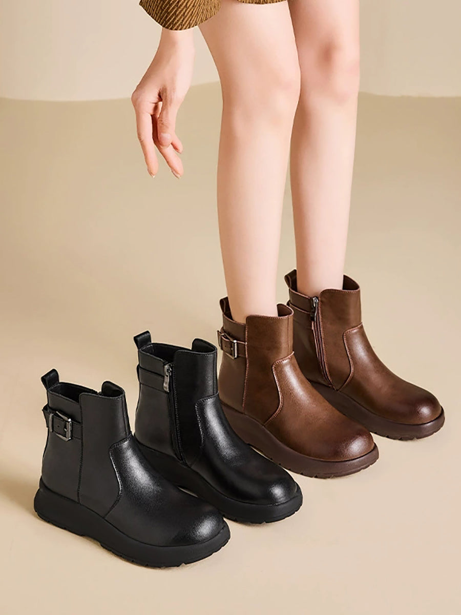Women Winter Genuine Leather Platform Martin Boots