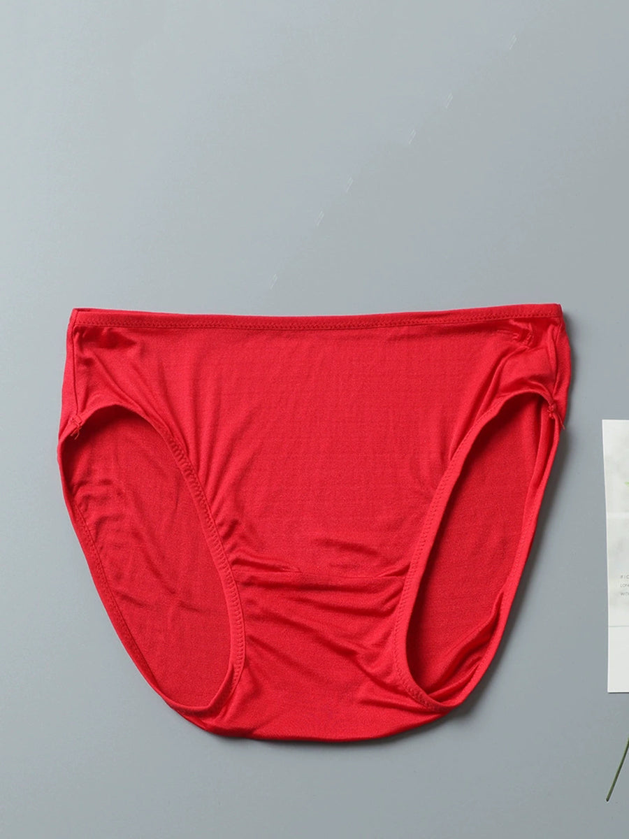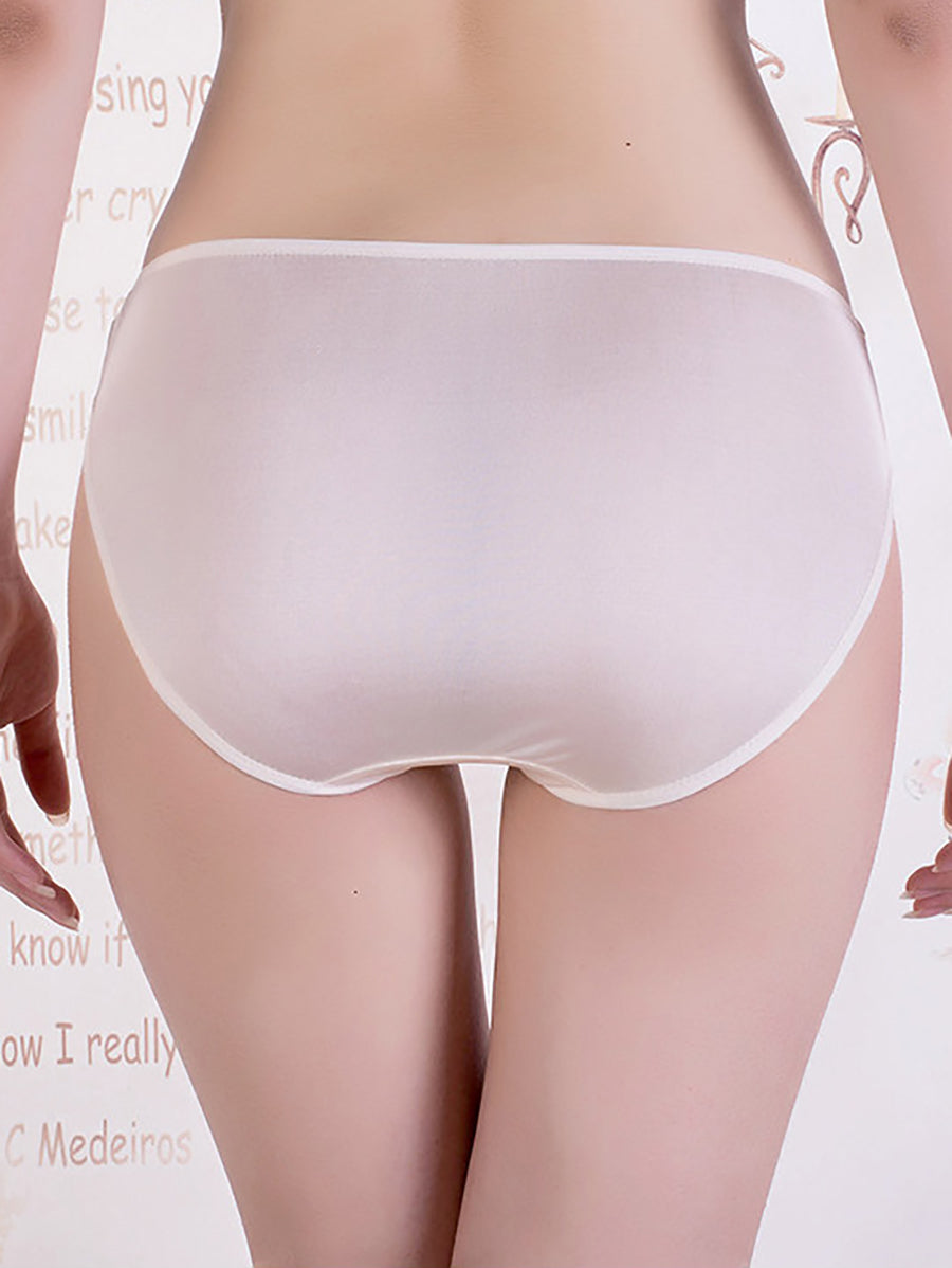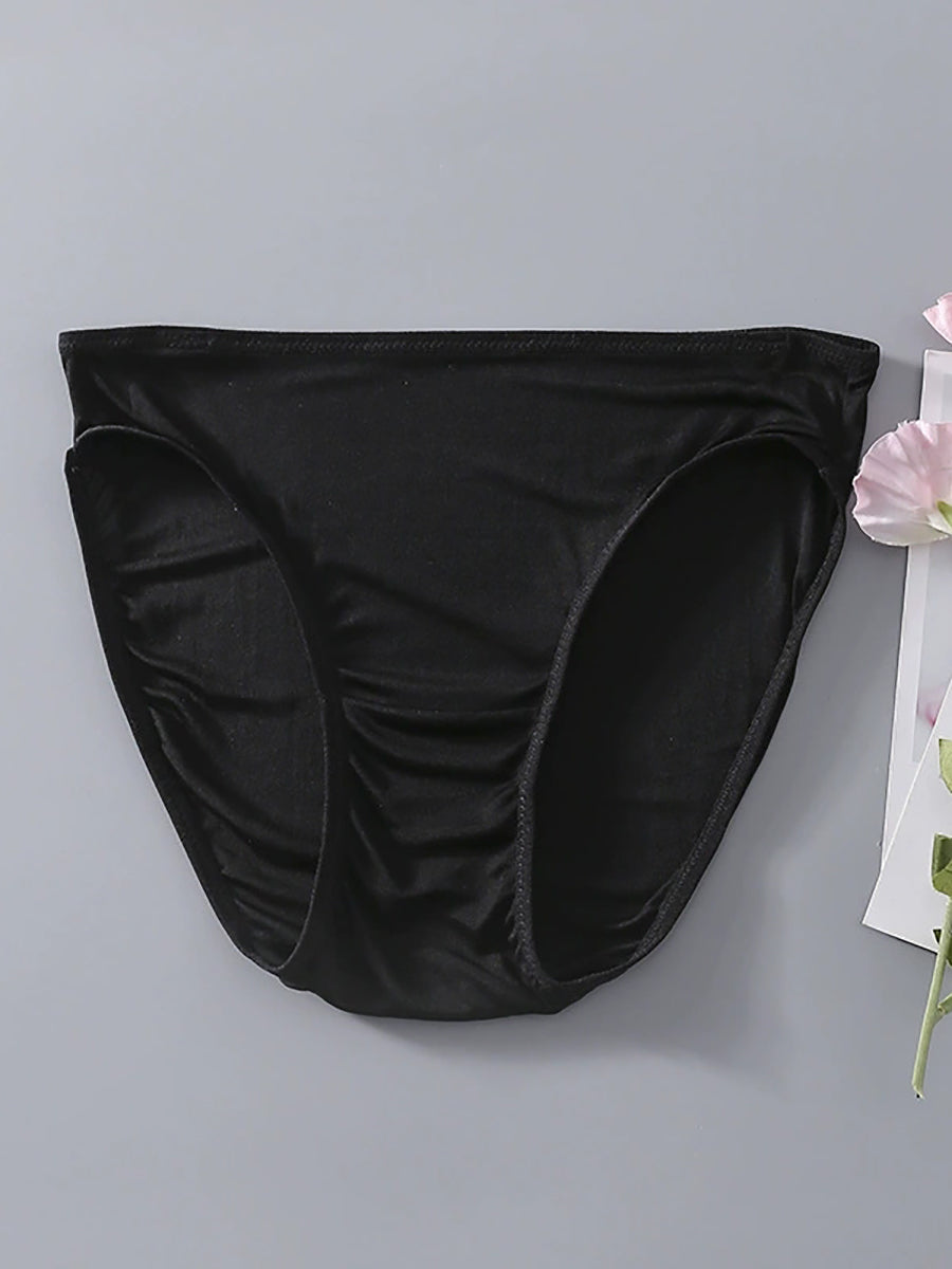 Women Artsy Pure Color High Waist Silk Underwear