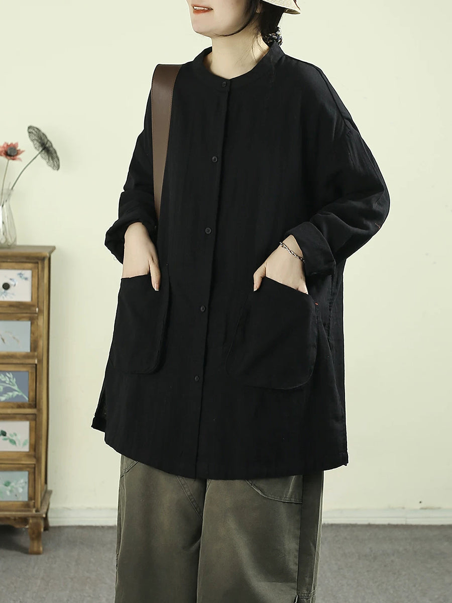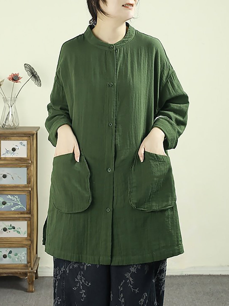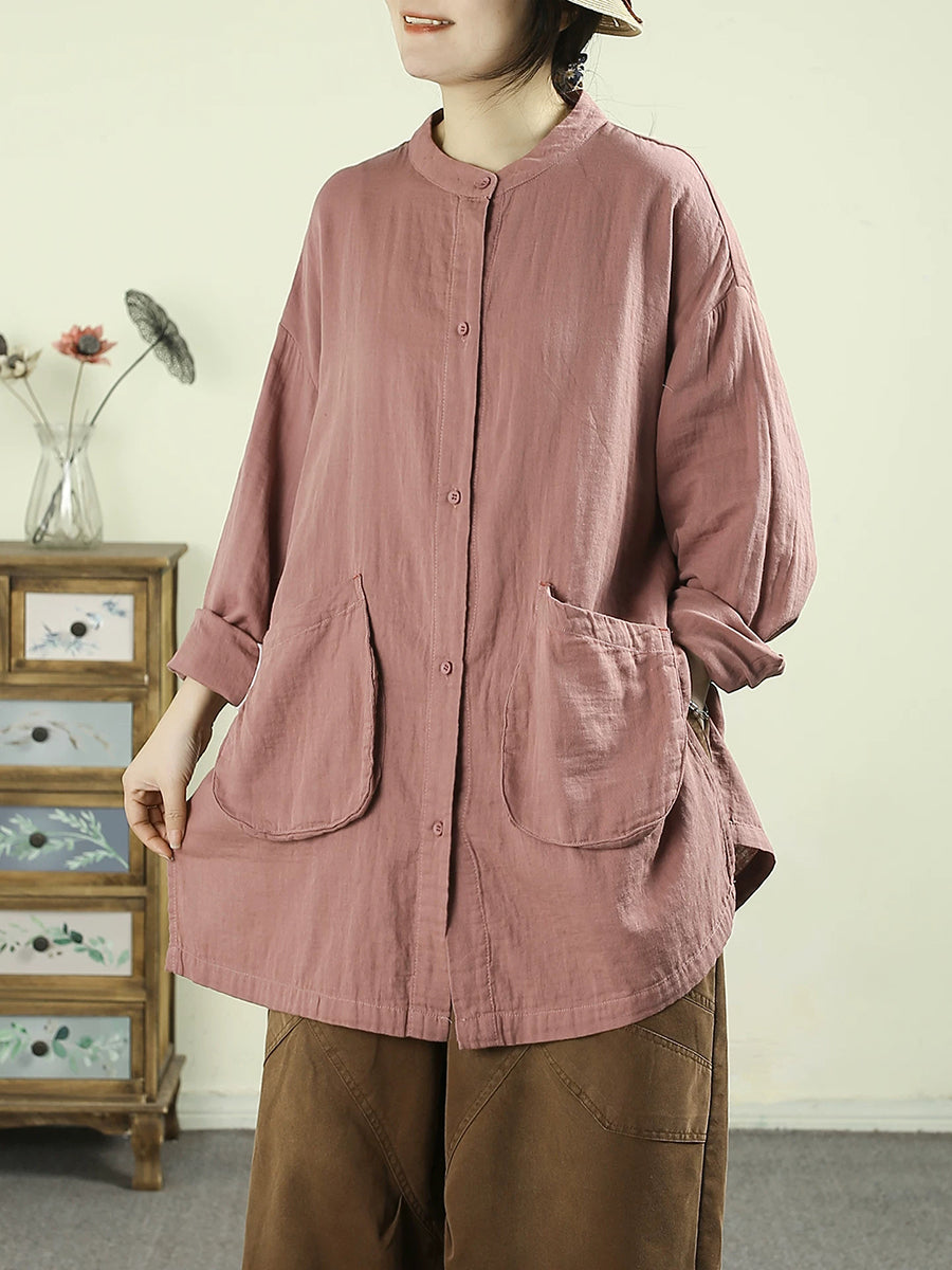 Women Spring Artsy Pure Color Cotton Long Shirt