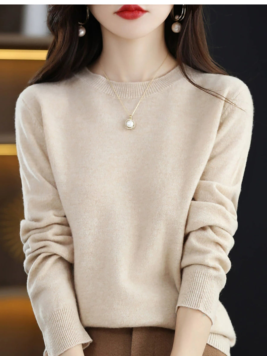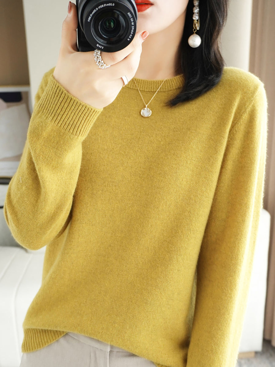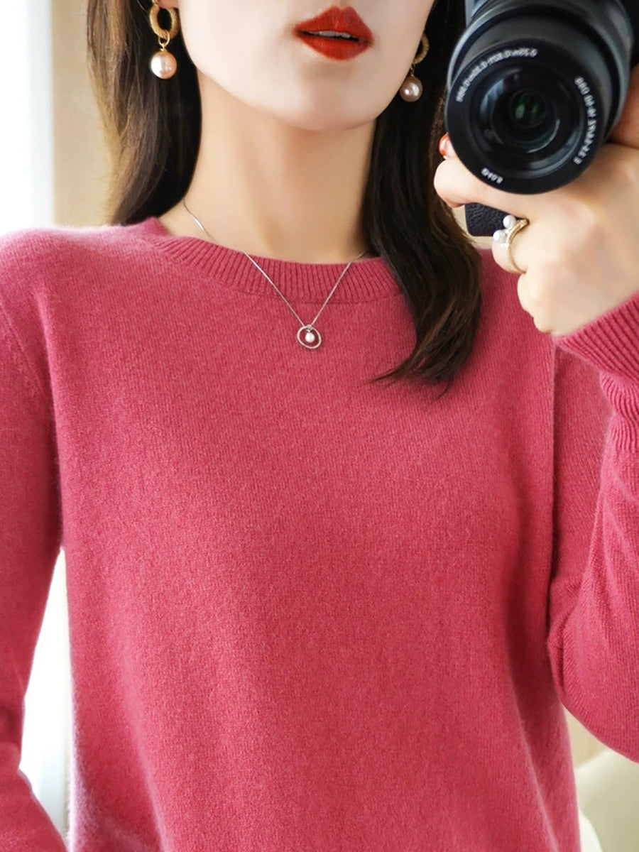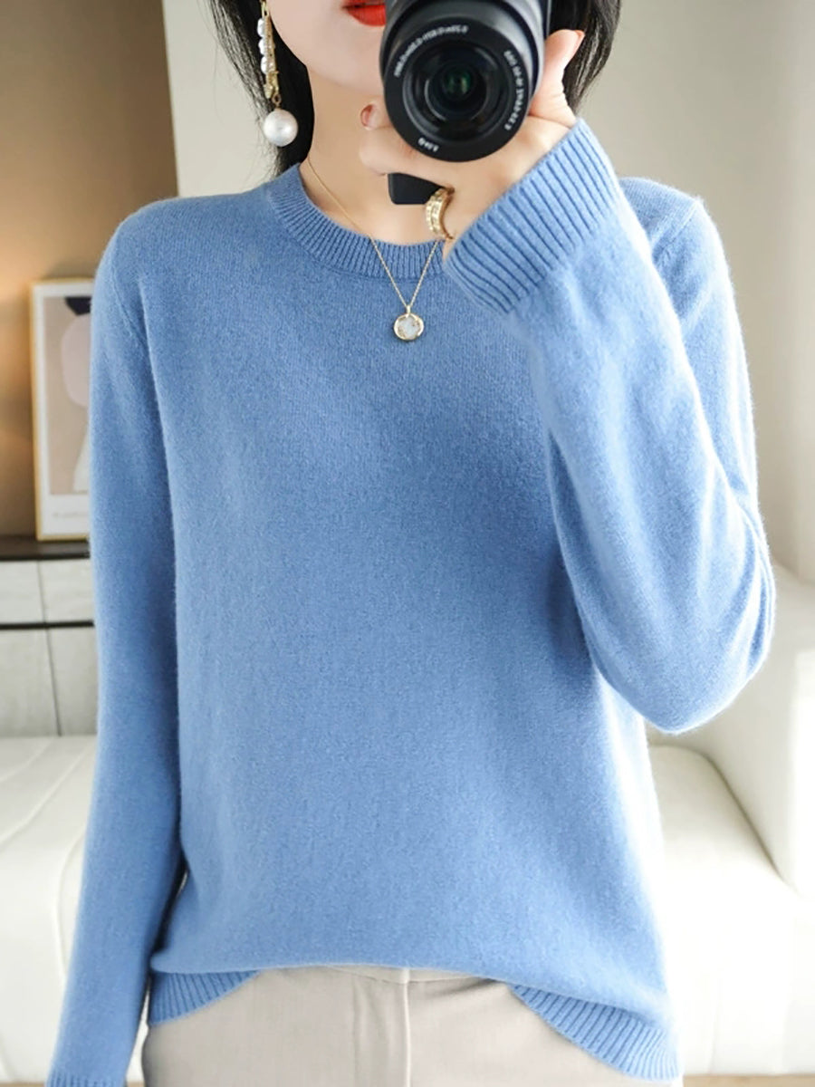 Women Spring Casual Pure Color O-Neck Sweater