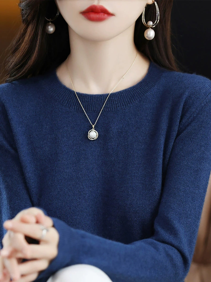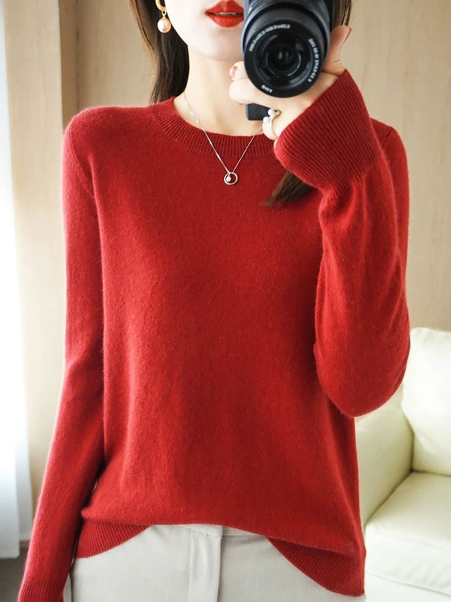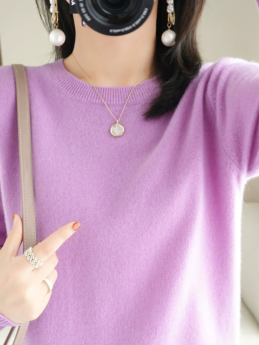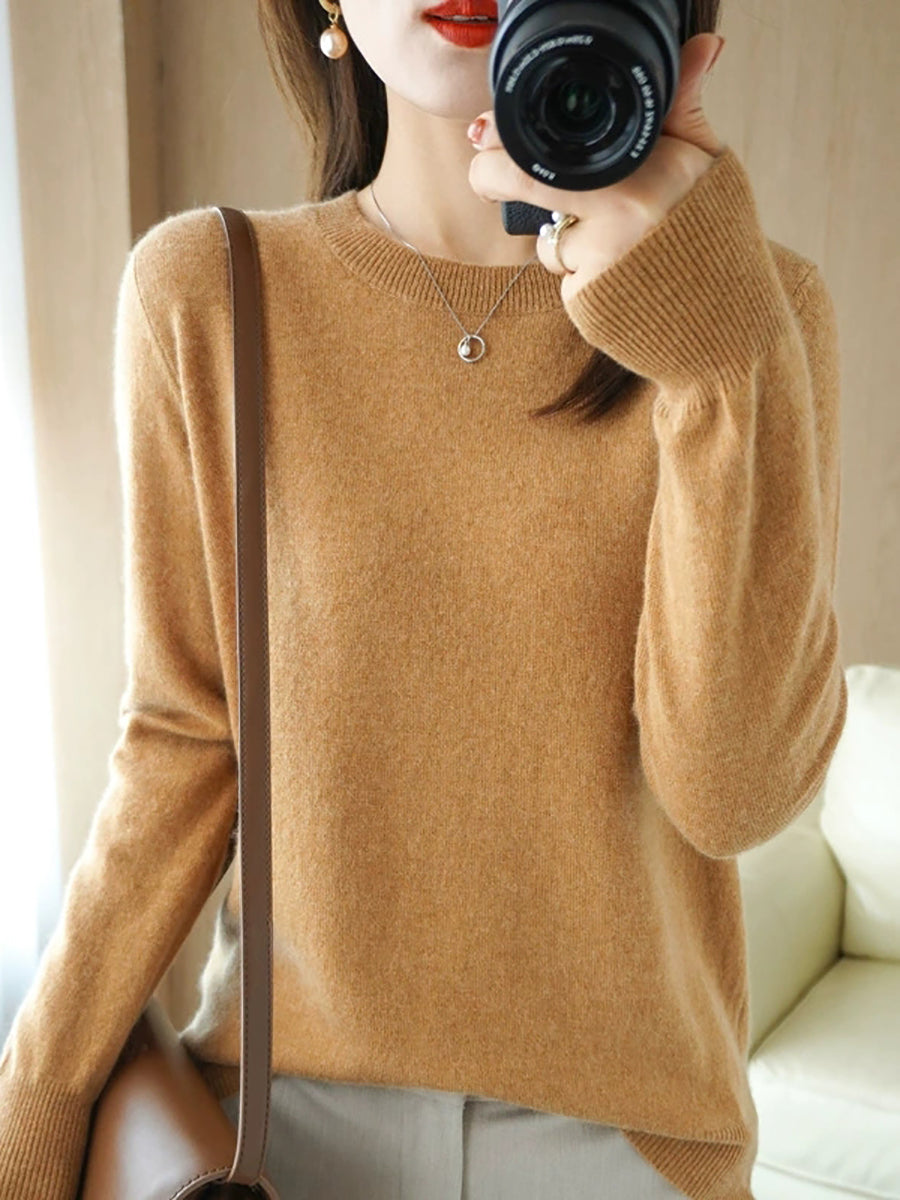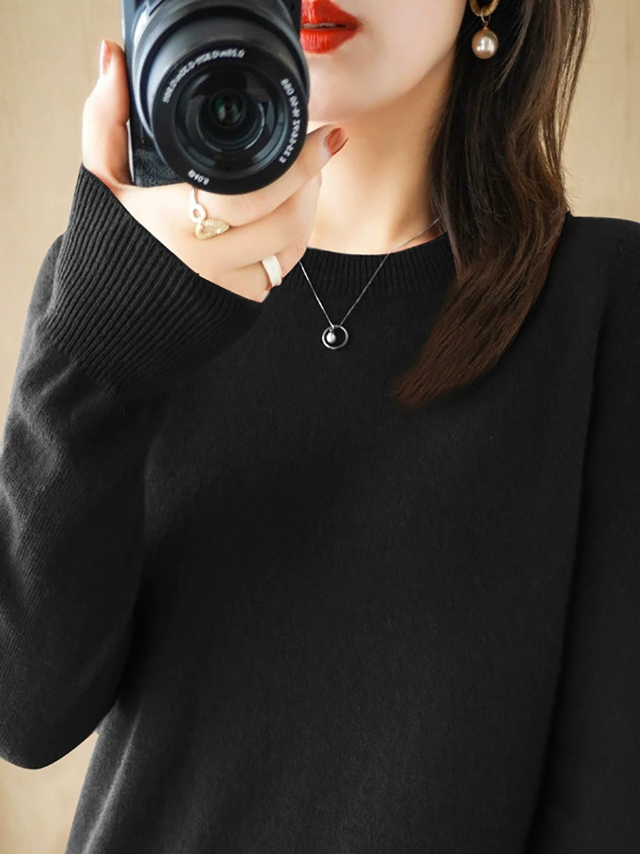 Women Spring Casual Pure Color O-Neck Sweater