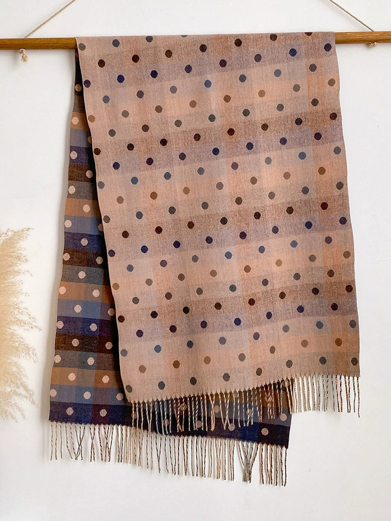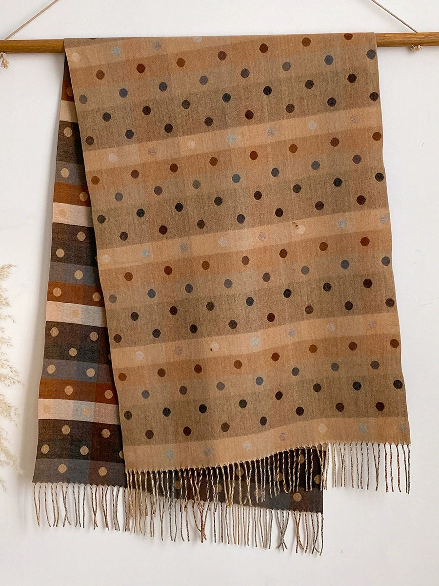 Women Winter Dot Jacquard Tassel Shawl Scarf