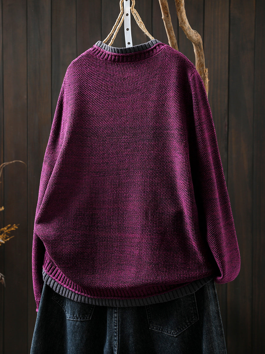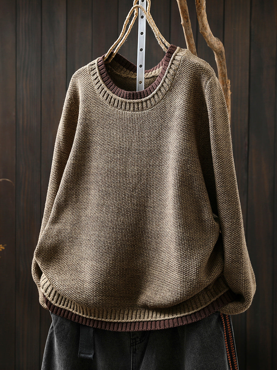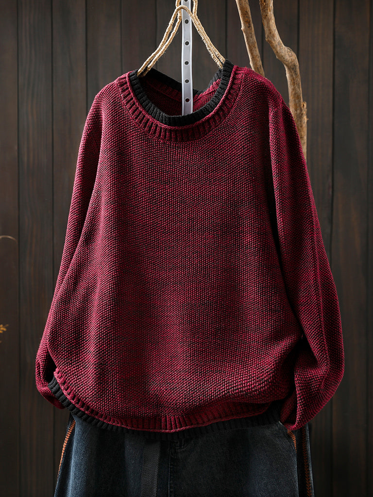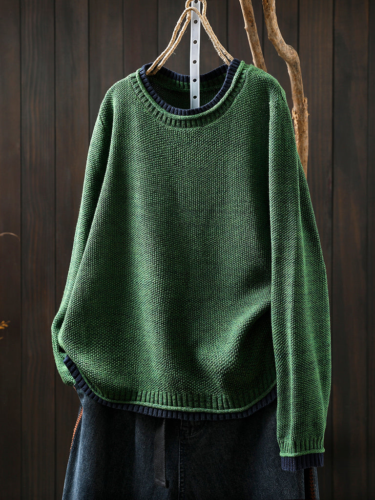 Women Autumn Artsy Colorblock O-Neck Knitted Sweater