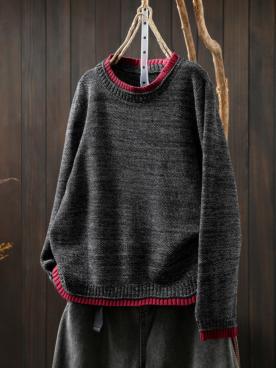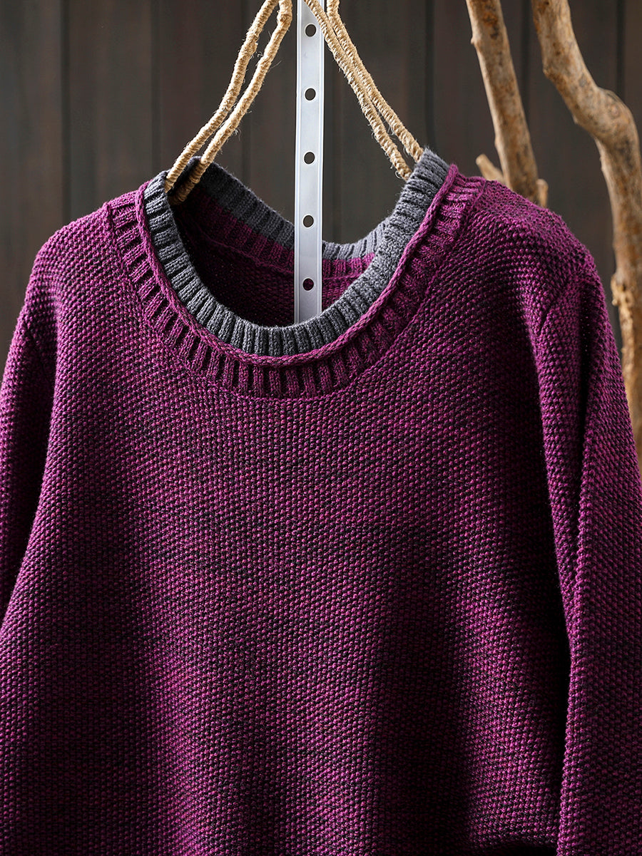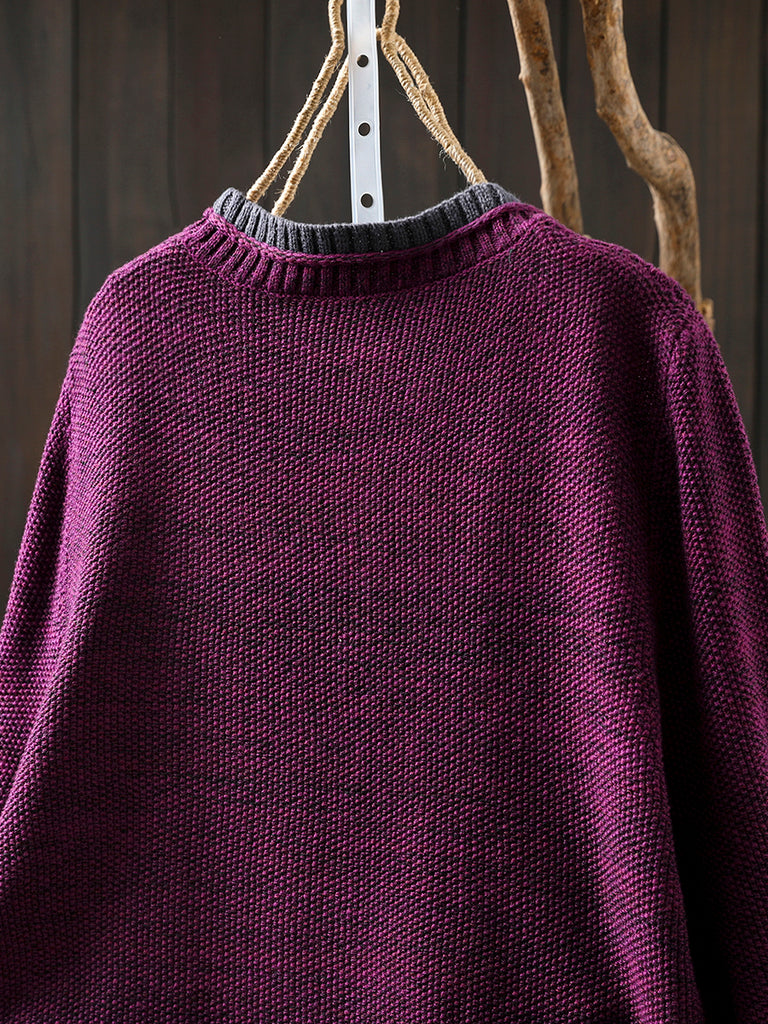 Women Autumn Artsy Colorblock O-Neck Knitted Sweater