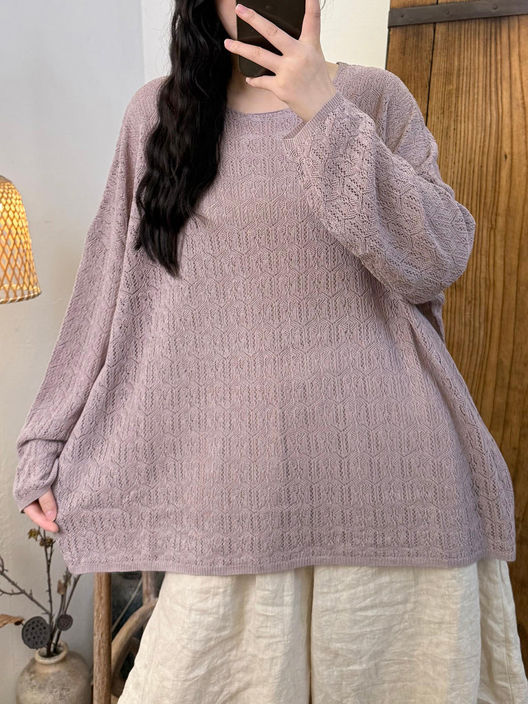 Women Autumn Casual Pure Color Linen Knitted O-Neck Shirt