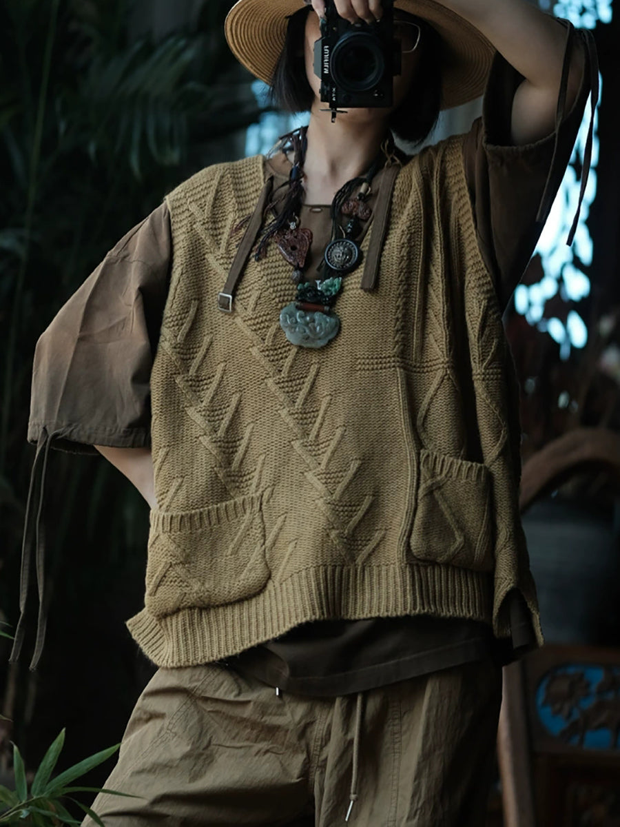 Women Autumn Casual Pure Color V-Neck Wool Vest