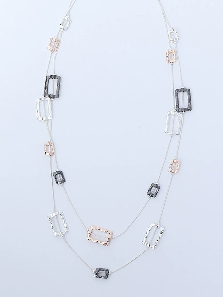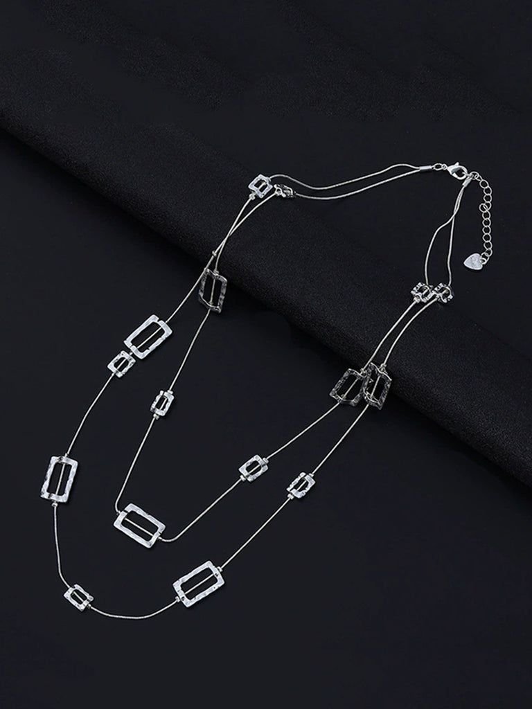 Women Fashion Quadrilateral Alloy Dual-Layer Necklace