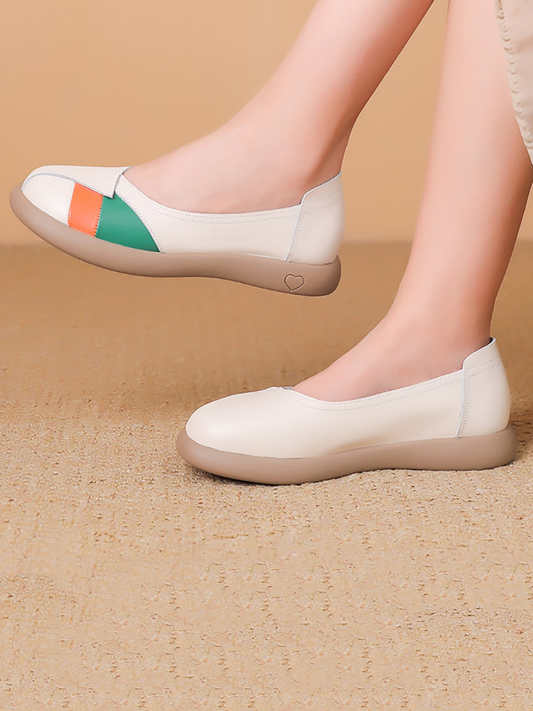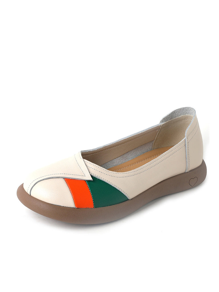 Women Artsy Colorblock Leather Spliced Flat Shoes