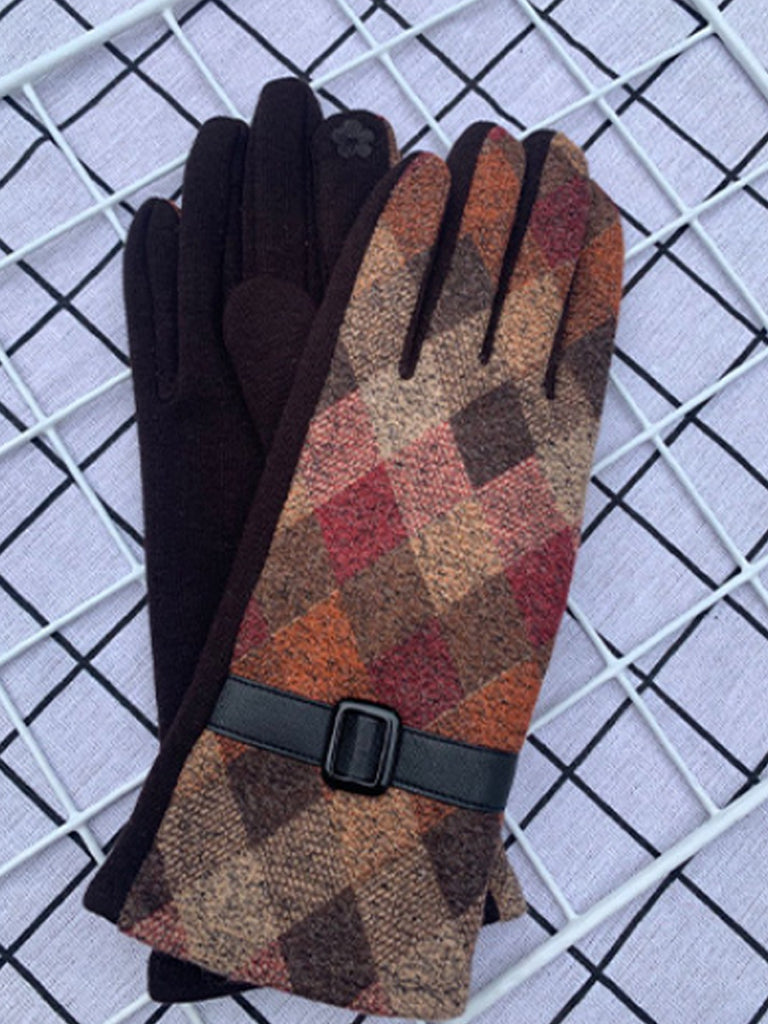 Women Ethnic Plaid Warm Cycling Gloves