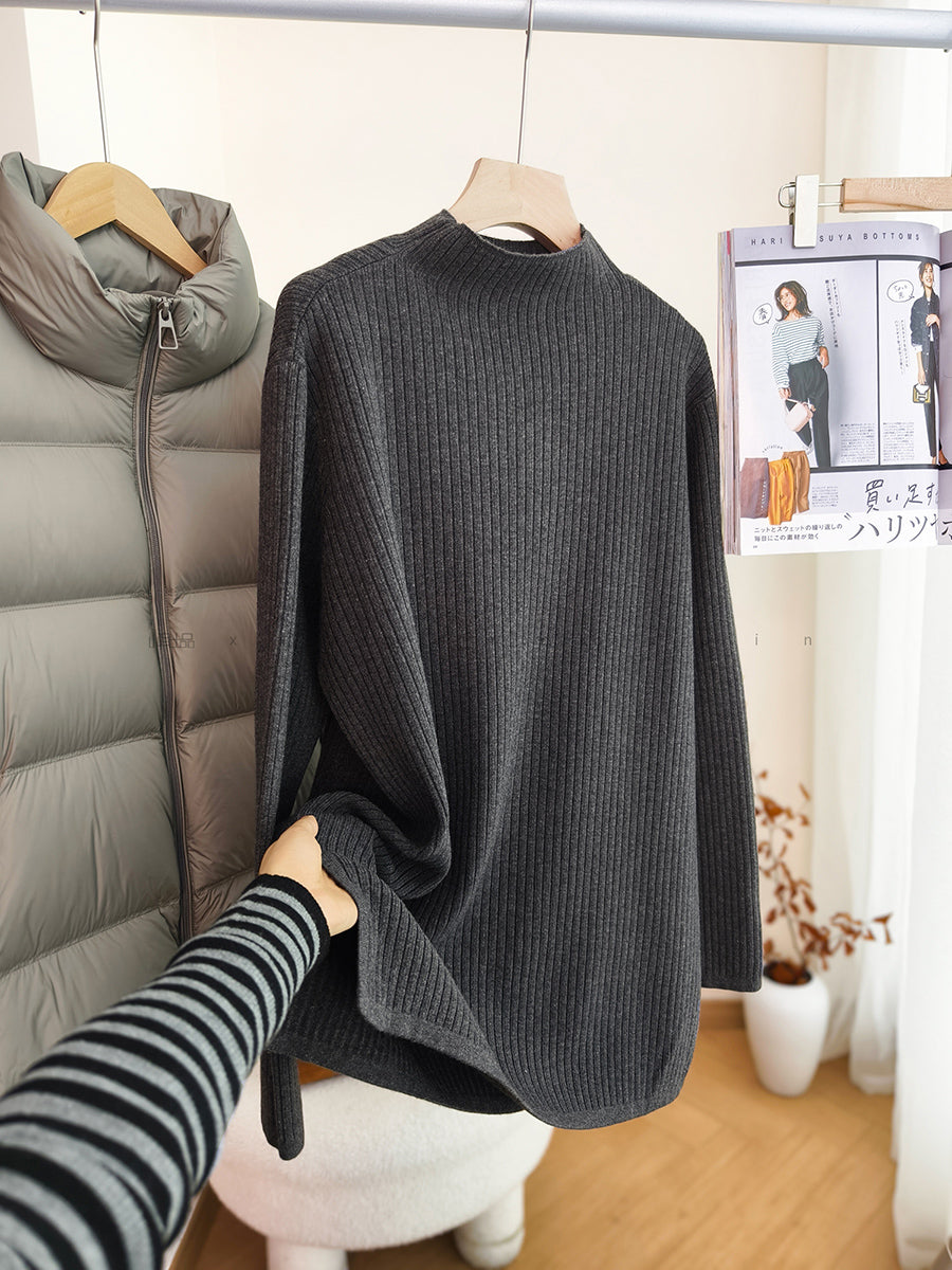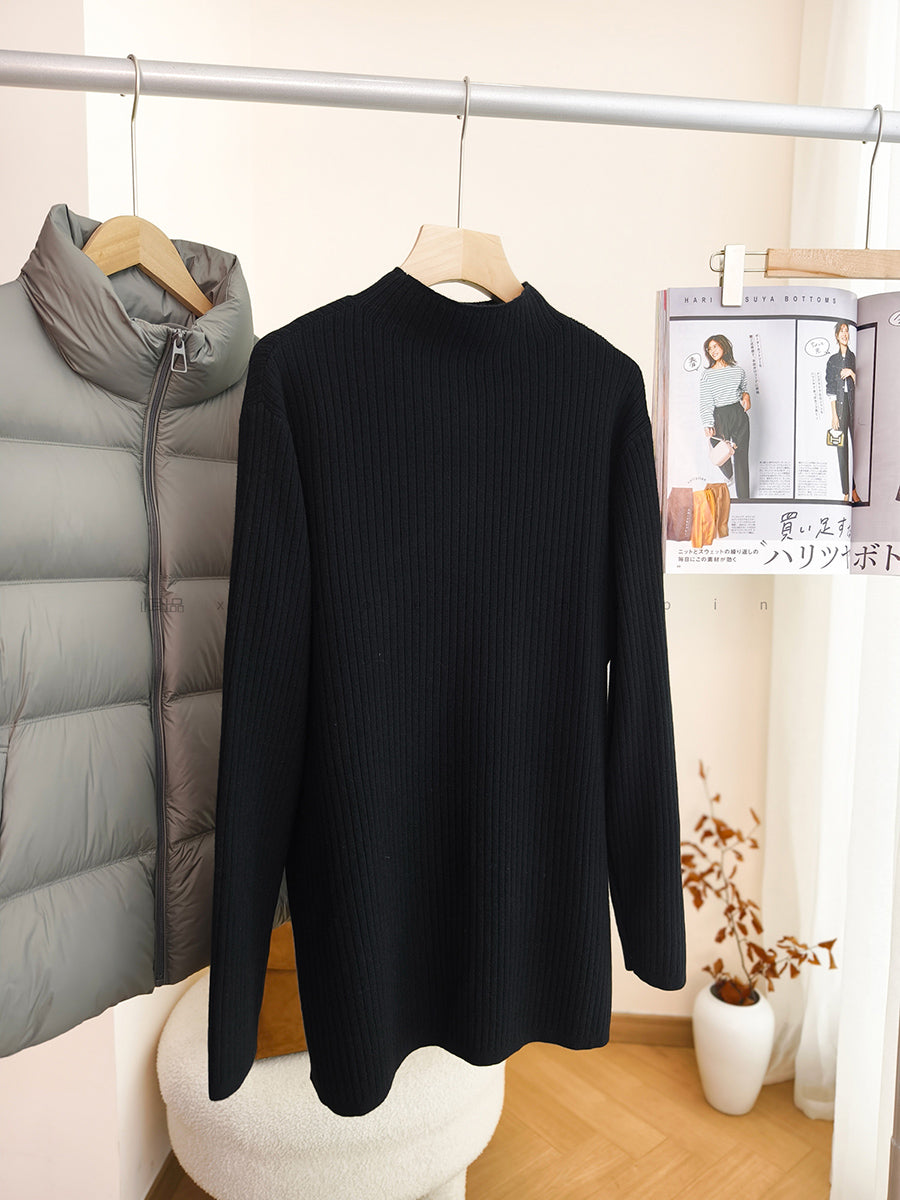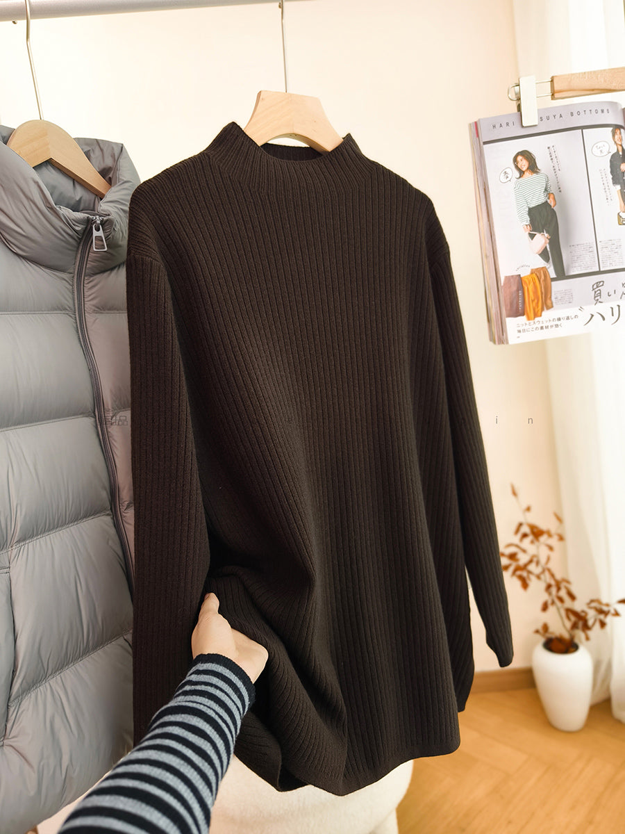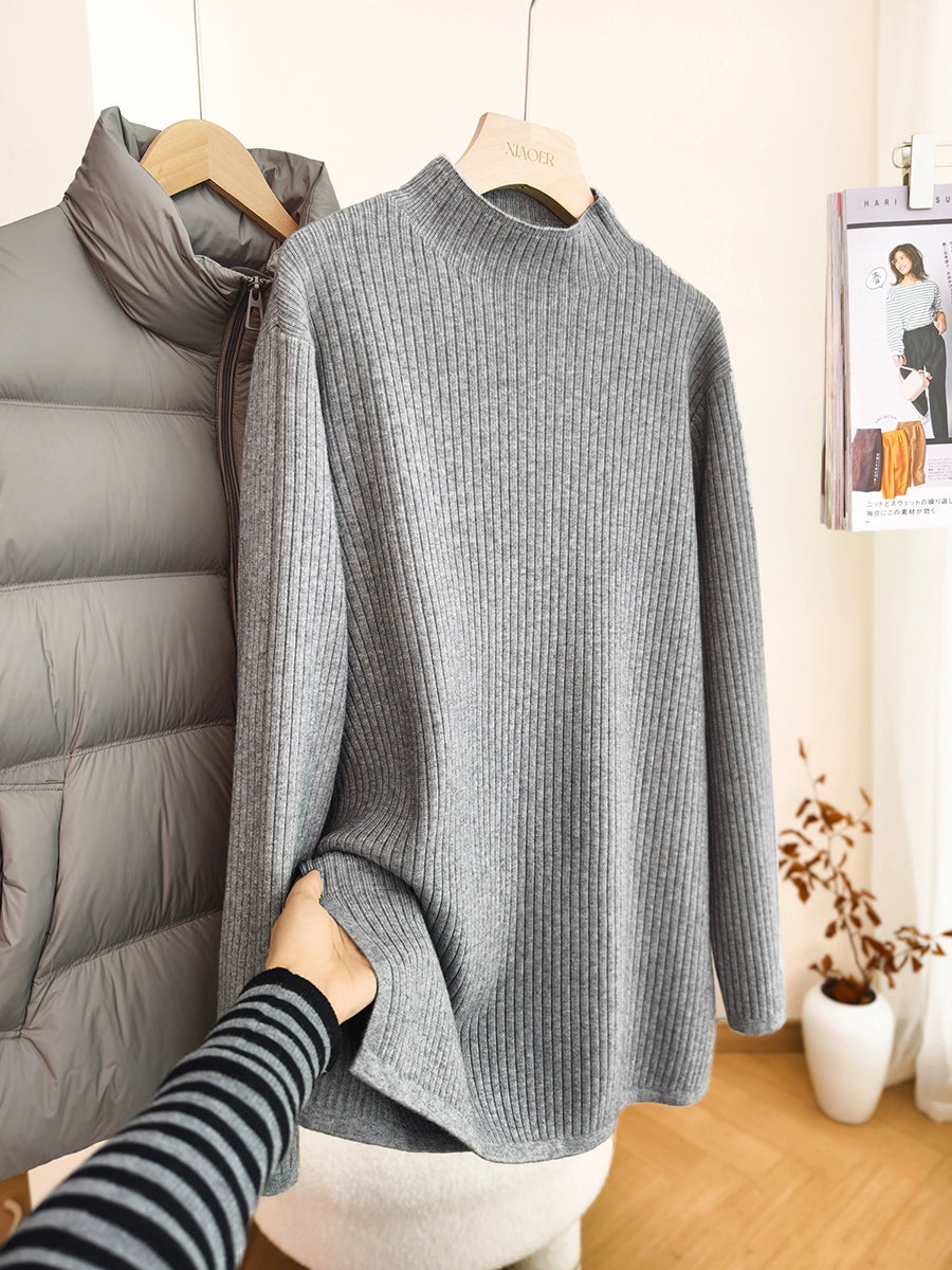 Women Autumn Artsy Pure Color Half-Turtleneck Sweater