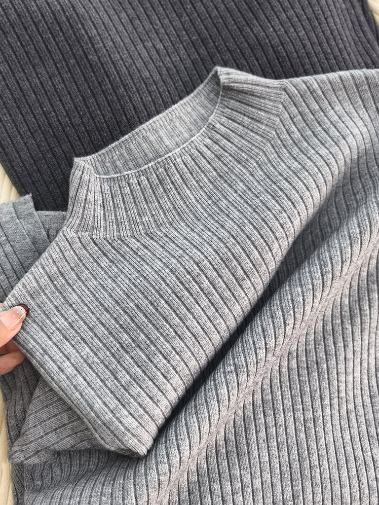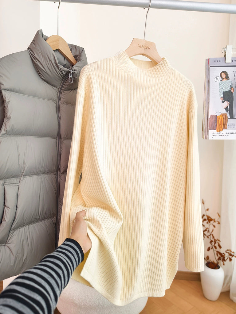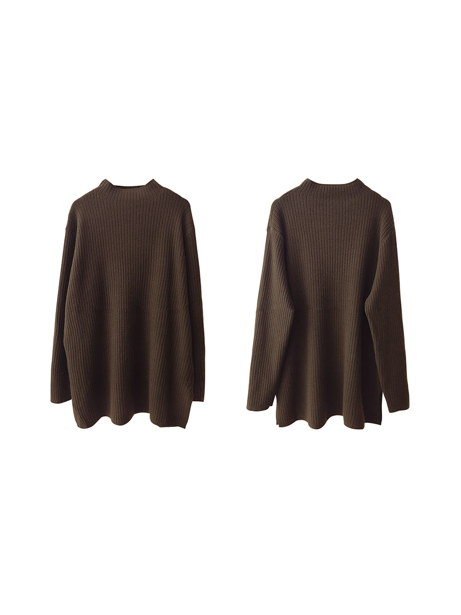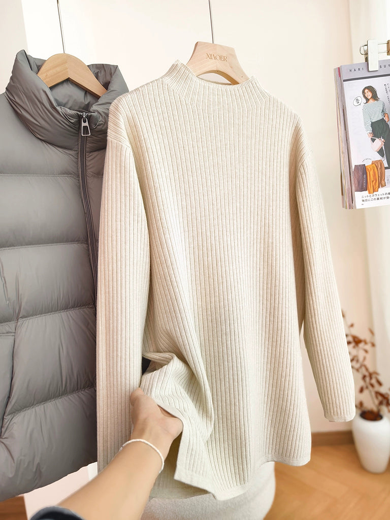 Women Autumn Artsy Pure Color Half-Turtleneck Sweater