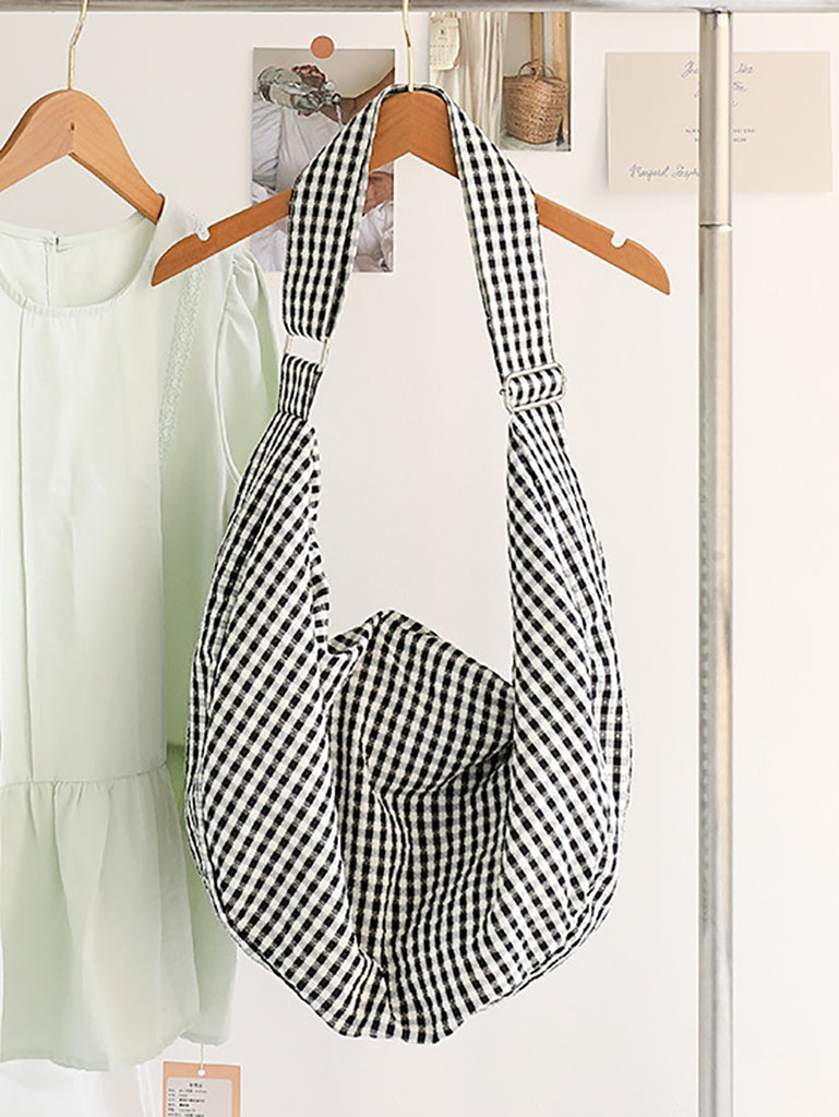 Women Casual Plaid Canvas Dumpling Shoulder Bag