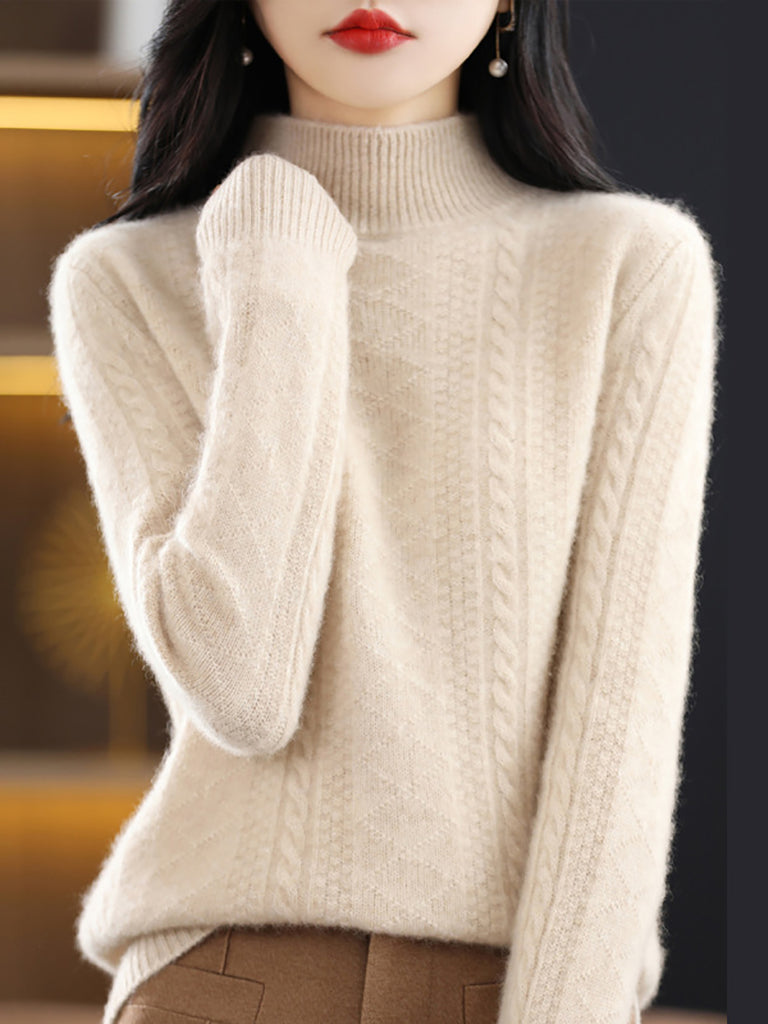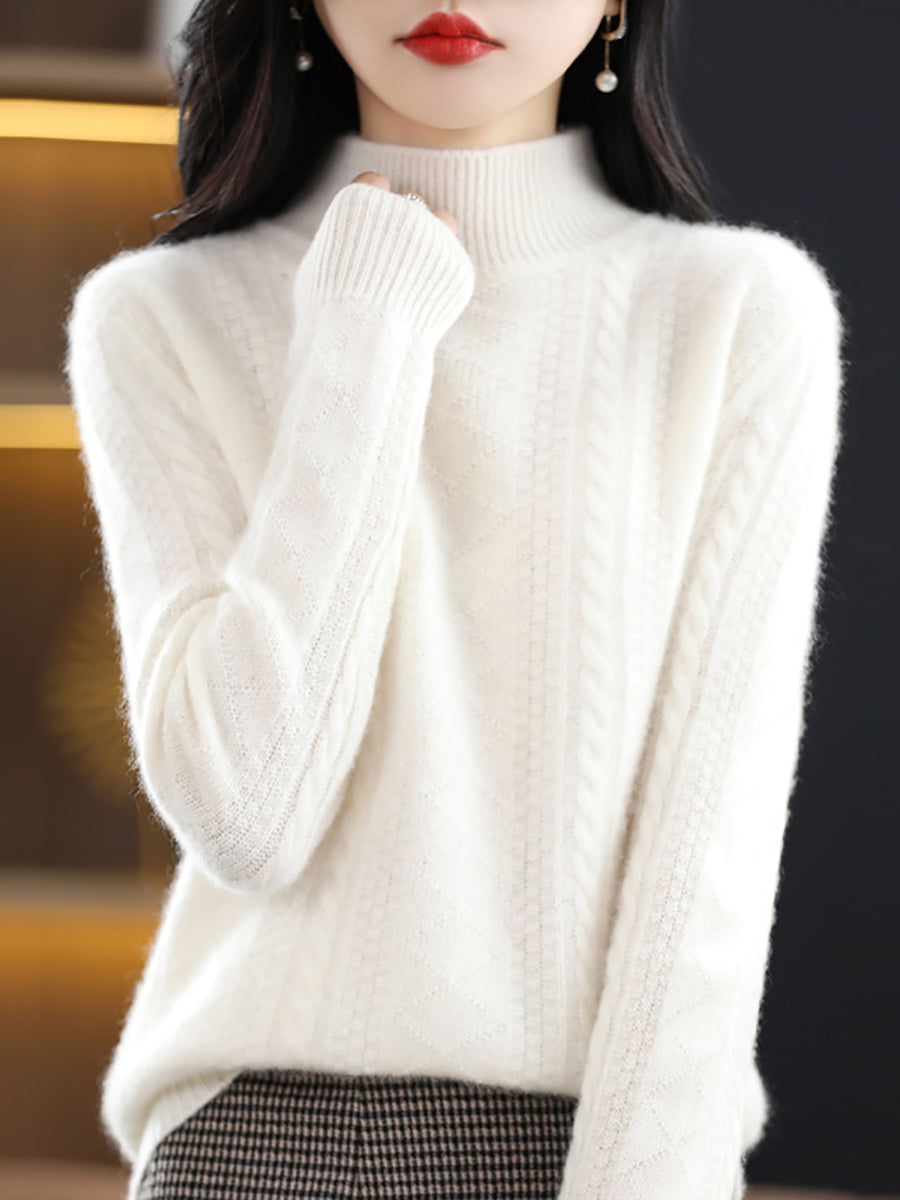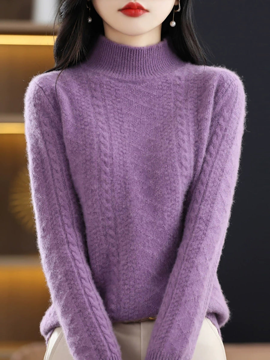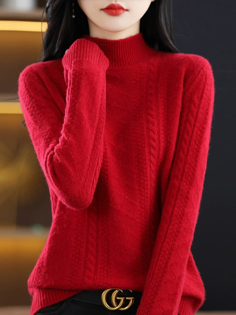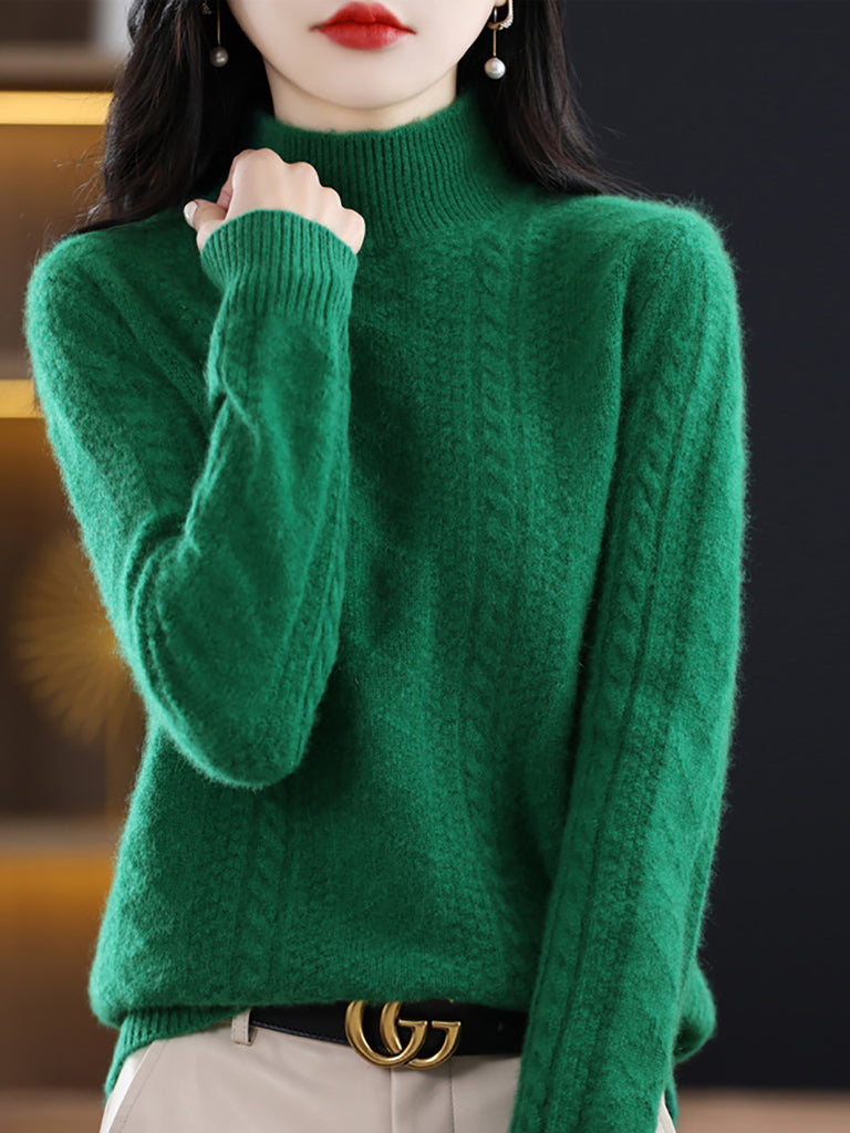 Women Winter Pure Color Half-Turtleneck Knitted Sweater