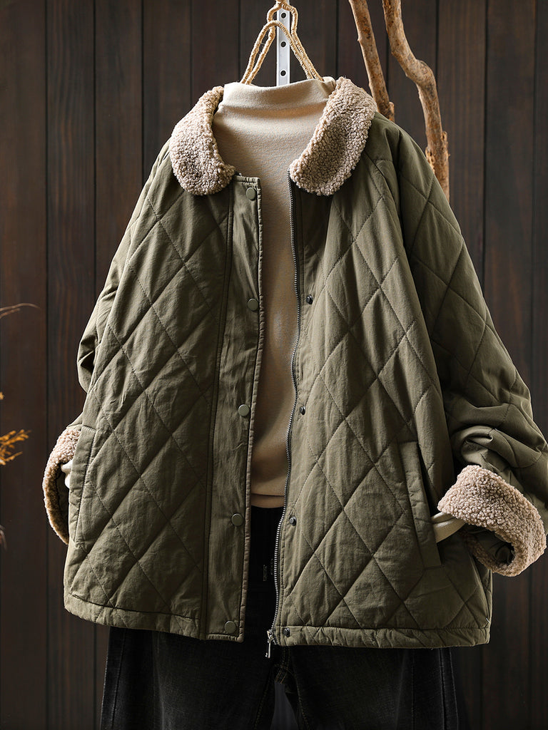 Women Winter Retro Fleece Spliced Turn-down Collar Coat